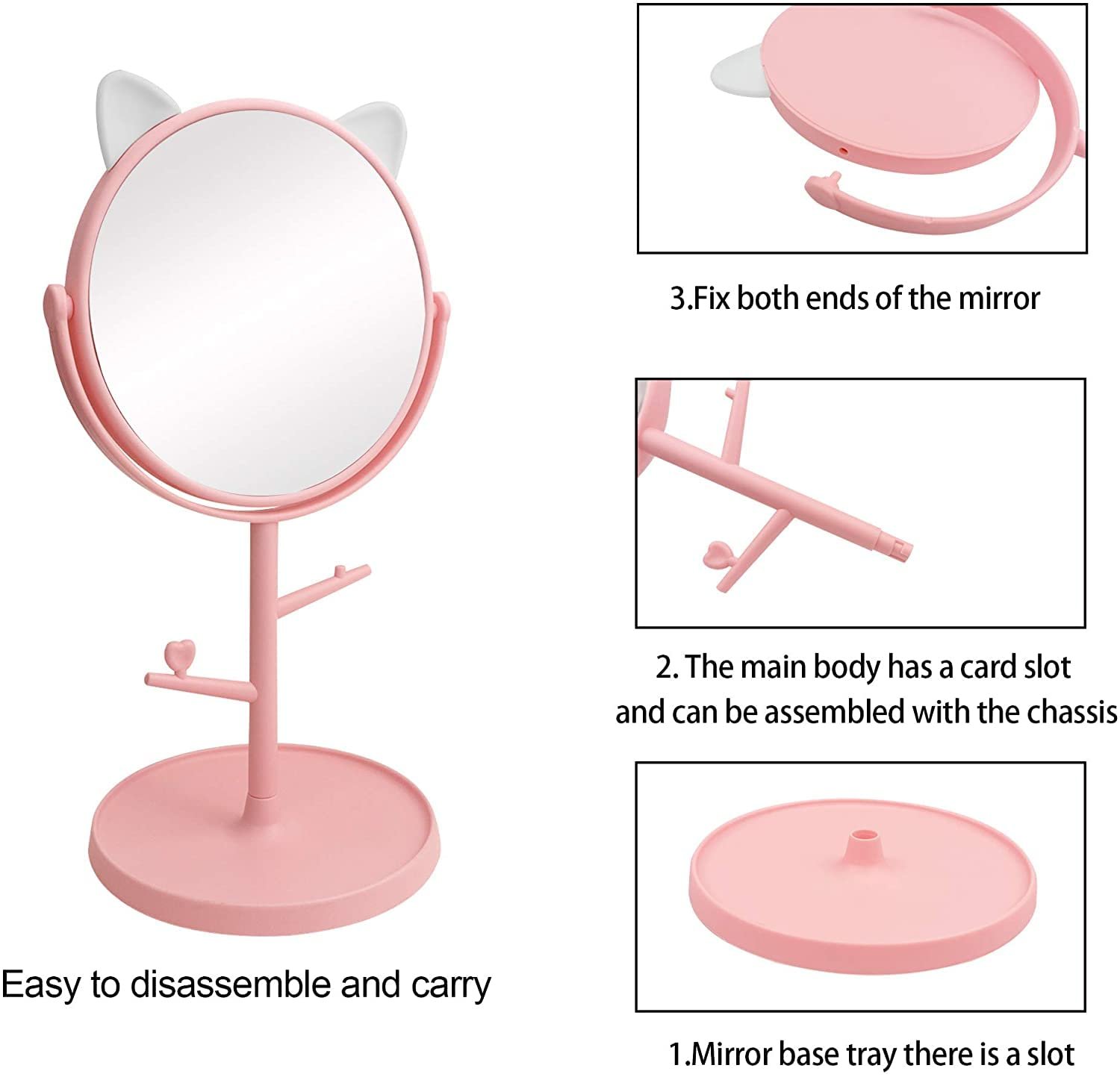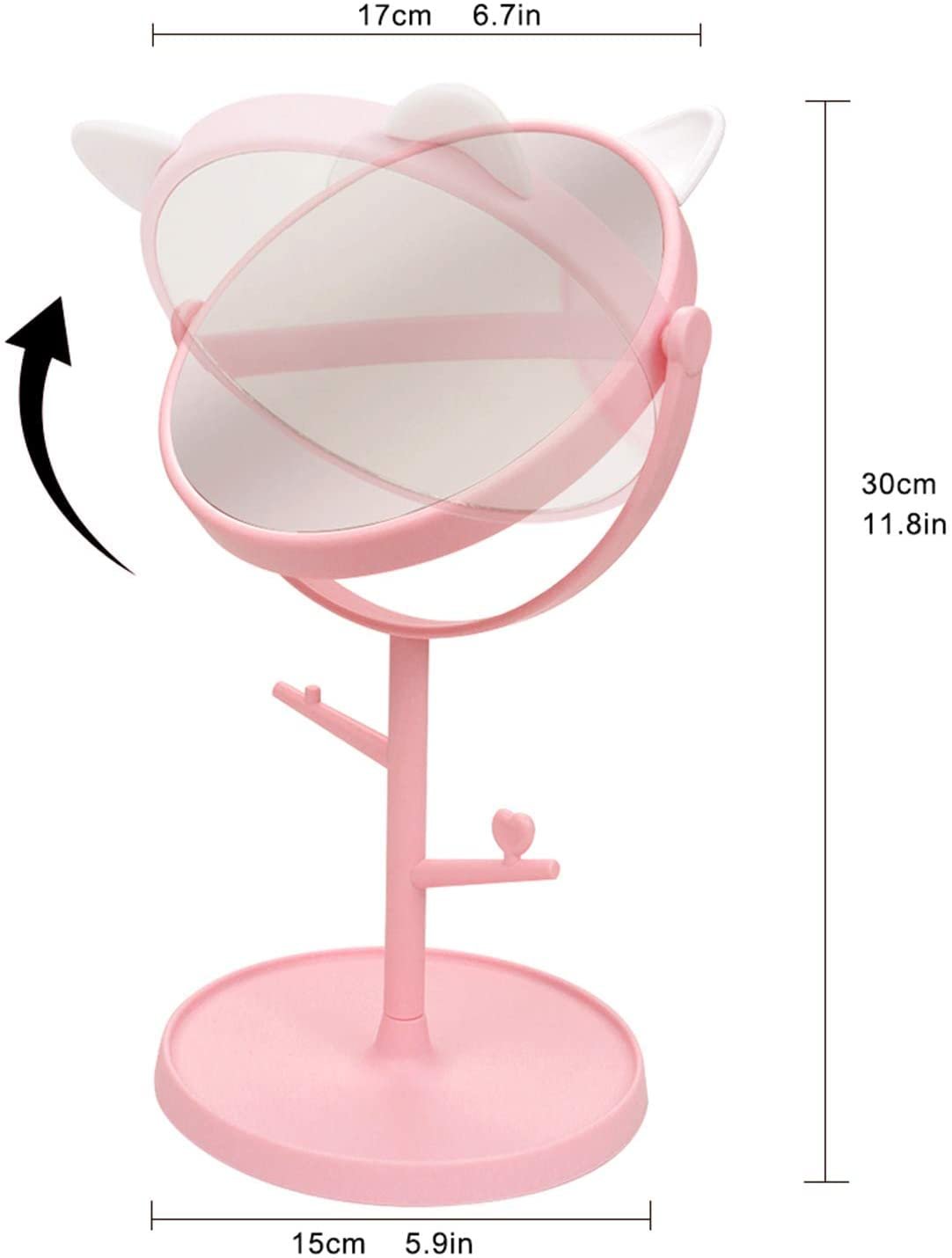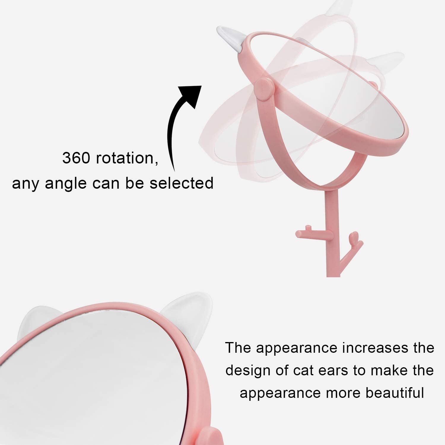 Leeonz Pink 360° Swivel Makeup Mirror, Bathroom Mirror, Shaving Mirror, Round, Tabletop Mounting, Framed (1Pcs) – Glass, 30 x 15 cm