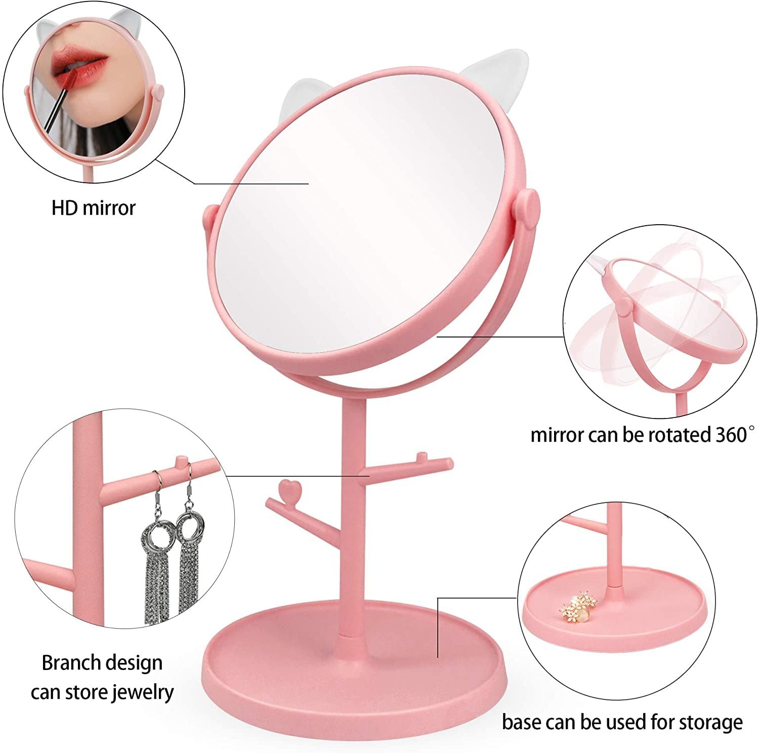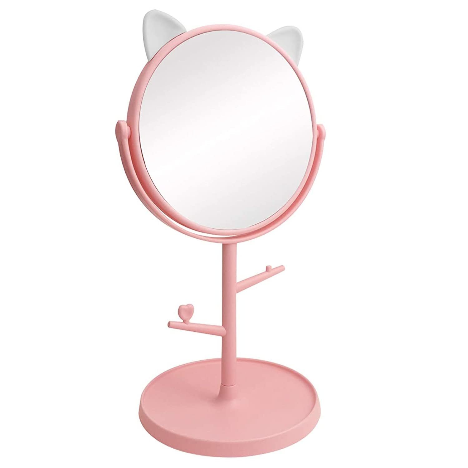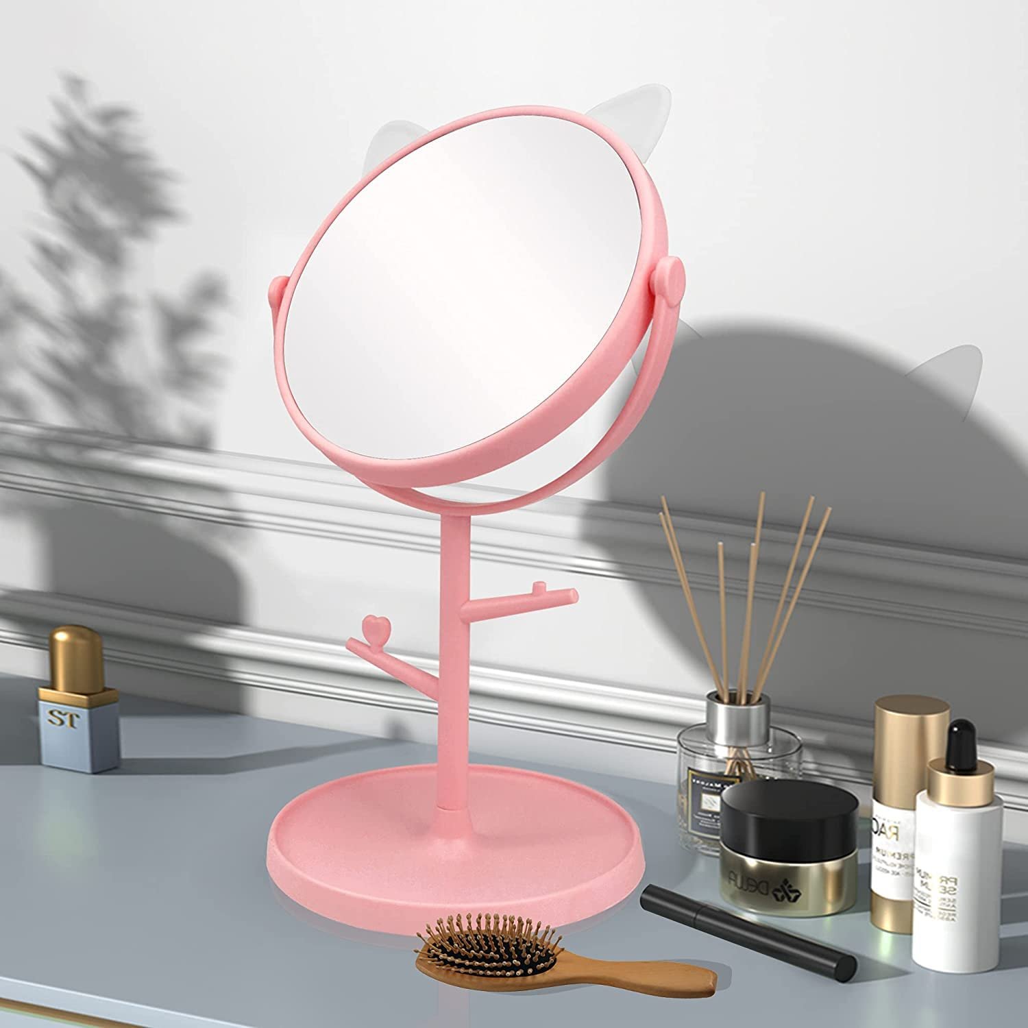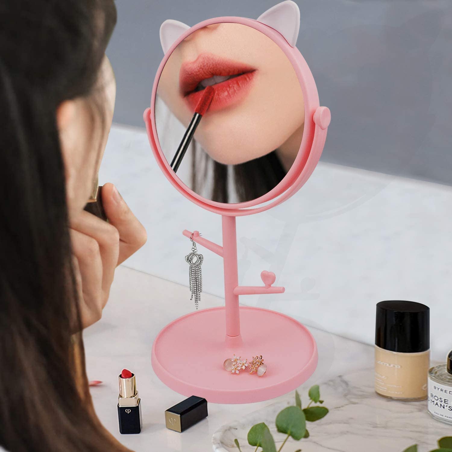 Leeonz Pink 360° Swivel Makeup Mirror, Bathroom Mirror, Shaving Mirror, Round, Tabletop Mounting, Framed (1Pcs) – Glass, 30 x 15 cm