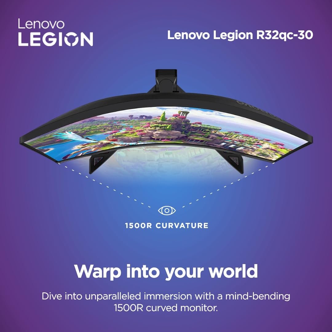 Lenovo Legion-R32qc-30 | 32″ (81.2cm) QHD 180Hz Curved Gaming Monitor | 0.5ms, AMD FreeSync, 99% sRGB, 3Wx2Speaker, 2xHDMI 2.1 TMDS, 1xDP 1.4| Tilt, Swivel, Pivot, Height Adjust | Black | 67C8GAC1IN