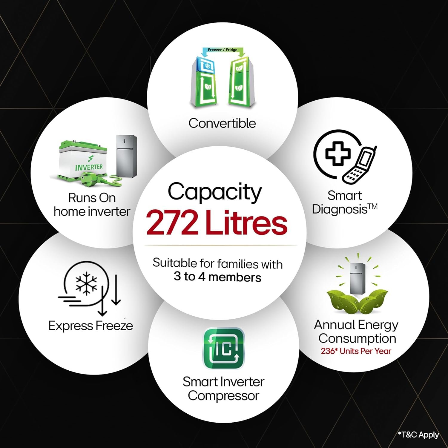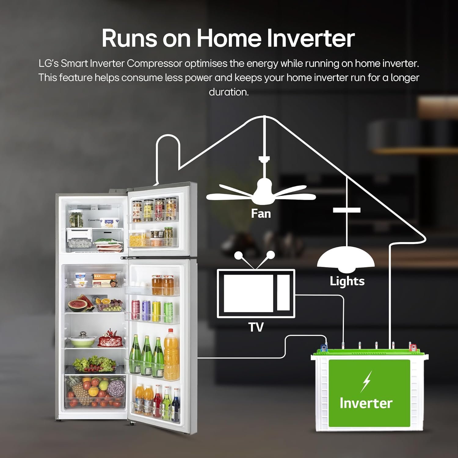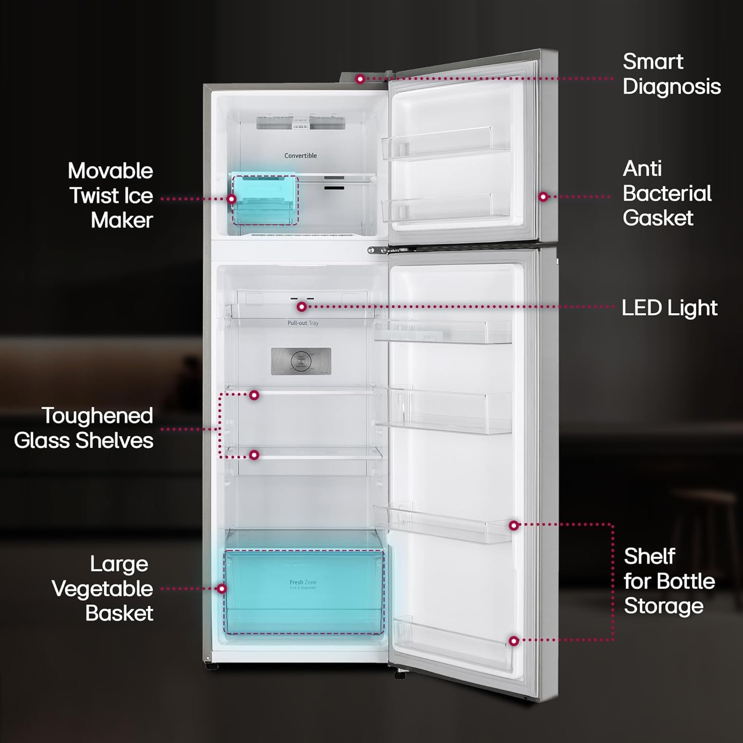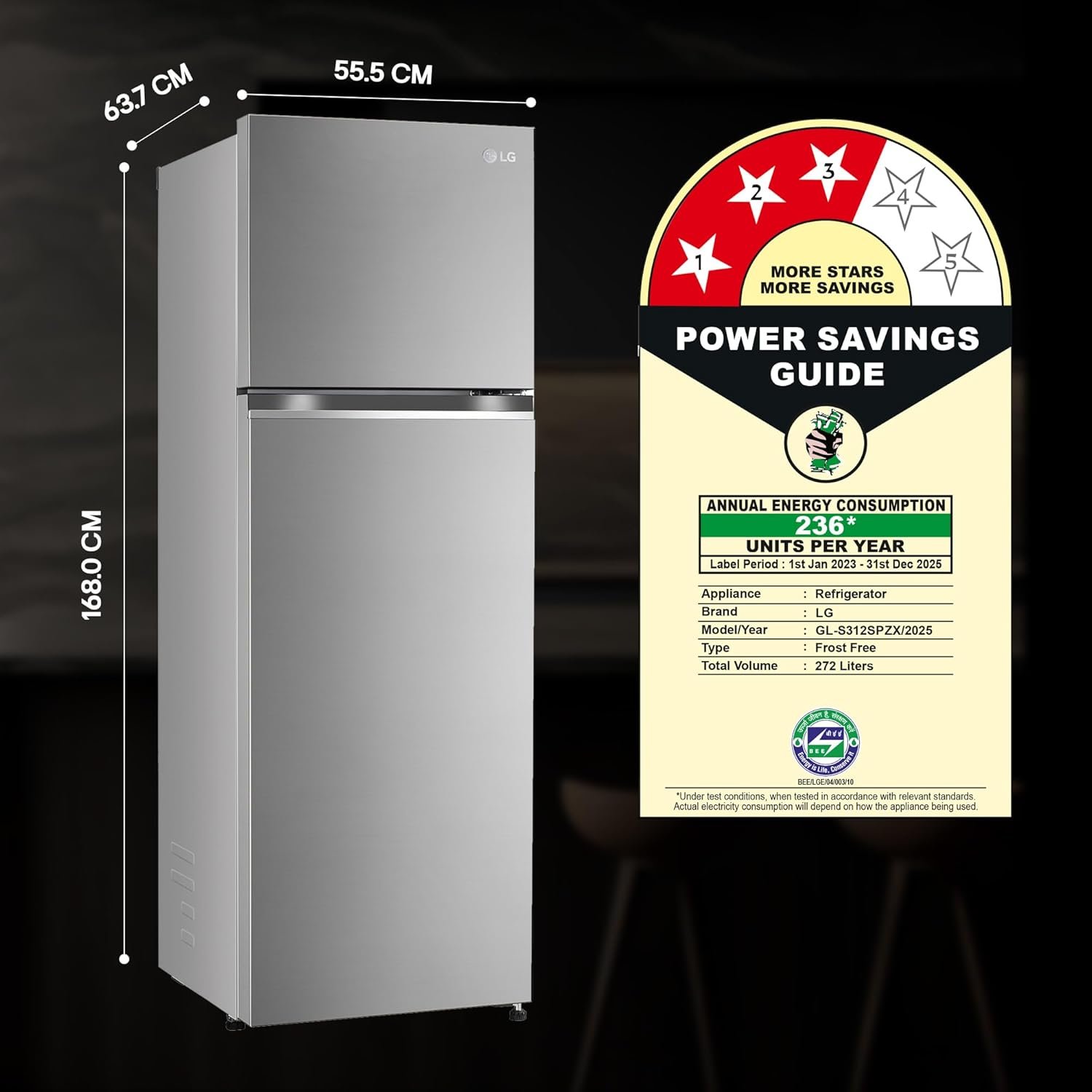 LG 272 L 3 Star Frost-Free Smart Inverter Compressor Double Door Refrigerator (GL-S312SPZX, Shiny Steel, Convertible & Multi Air Flow Cooling)
