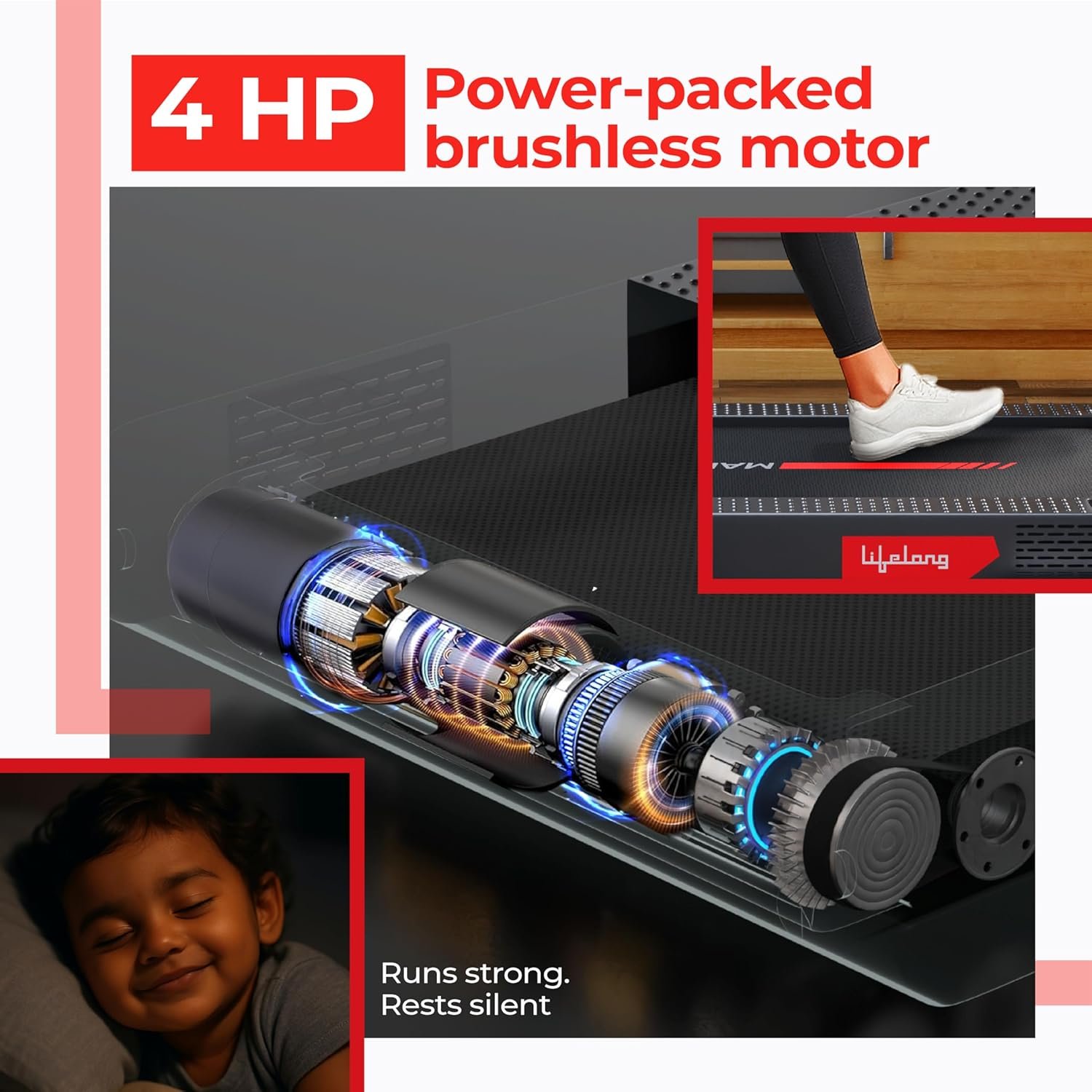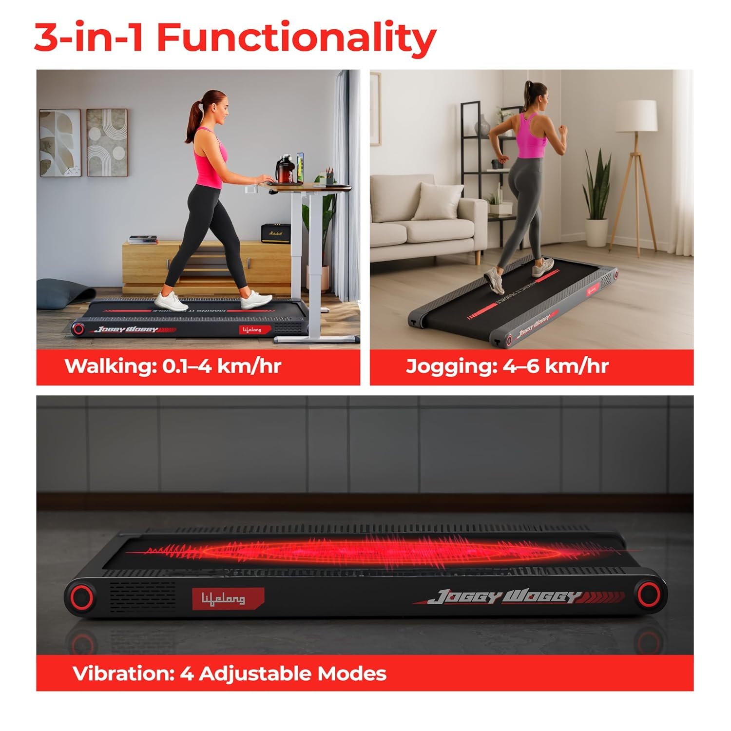 Lifelong Walking Pad Treadmill for Home| 4 HP Peak Motorised Treadmill with Vibration Plate | 3-in-1 Function with Walking, Jogging & 4 Vibration Massage Modes| LED Display | Supports 120kg