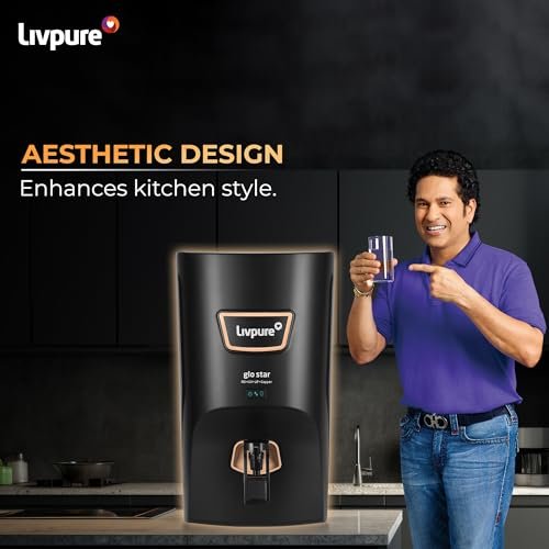 Livpure Glo Star Copper Water Purifier | Free Standard Installation | 8 Stage Advanced Purification | RO+UV+UF Copper | Mineraliser | In Tank UV Sterilisation | 7L Storage Capacity | Black