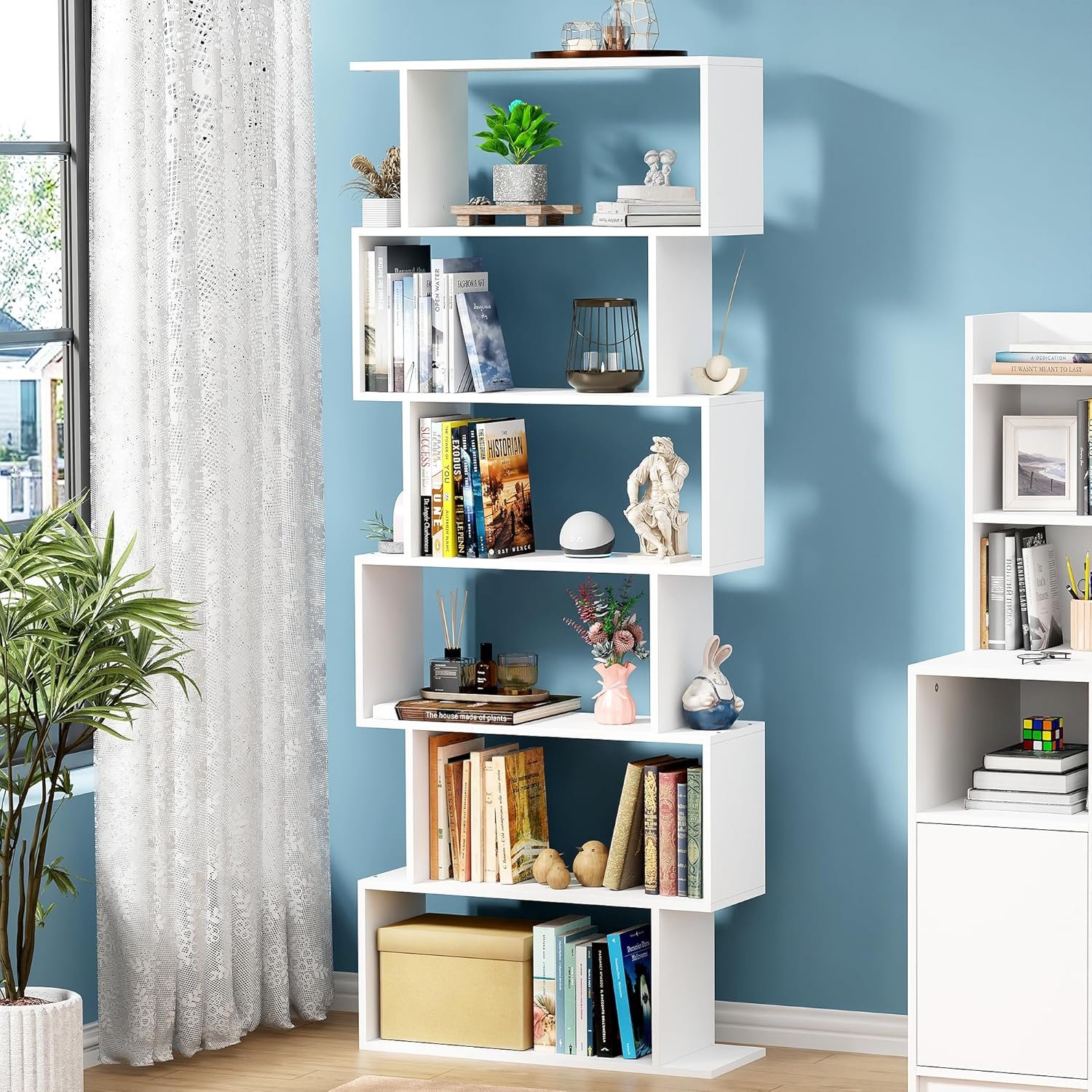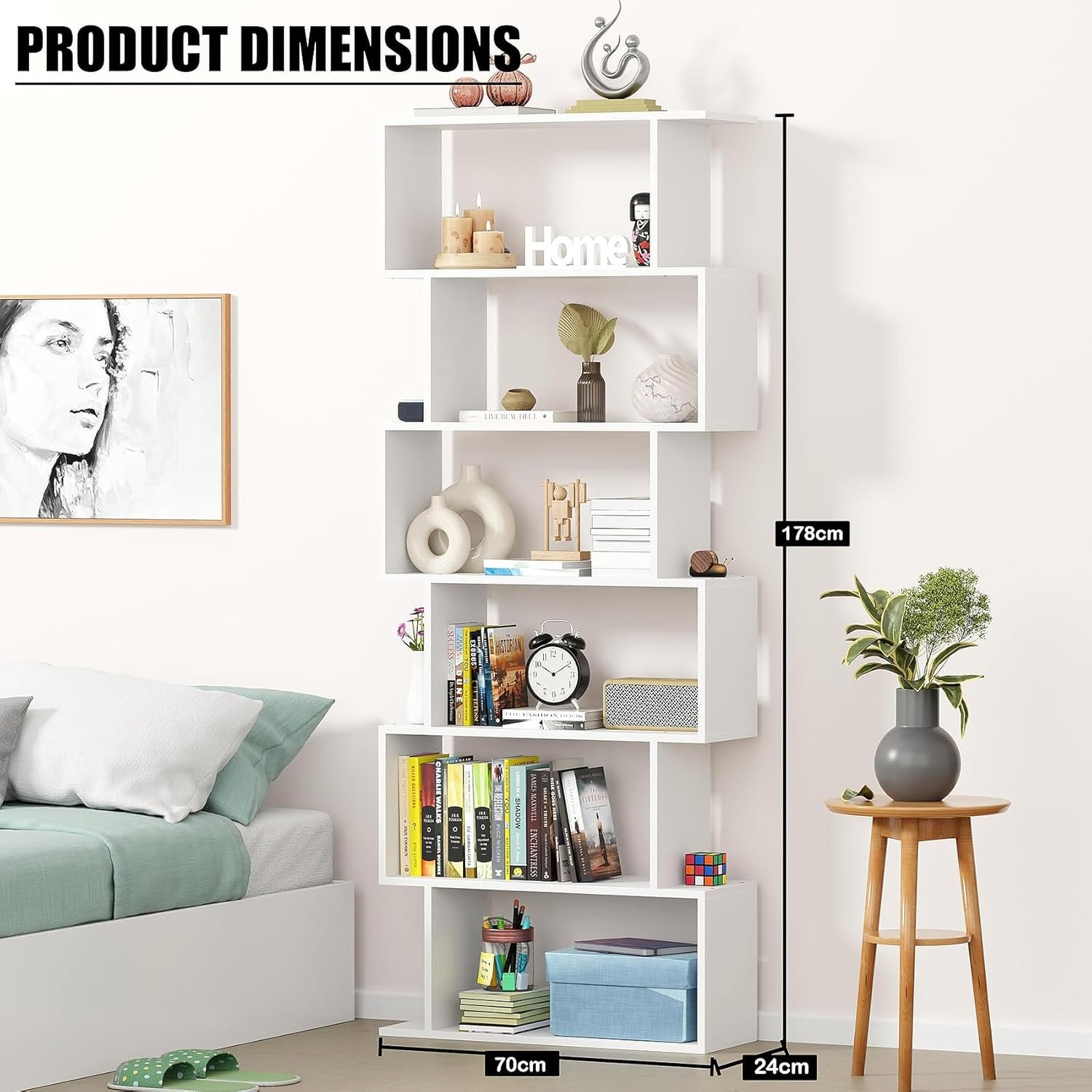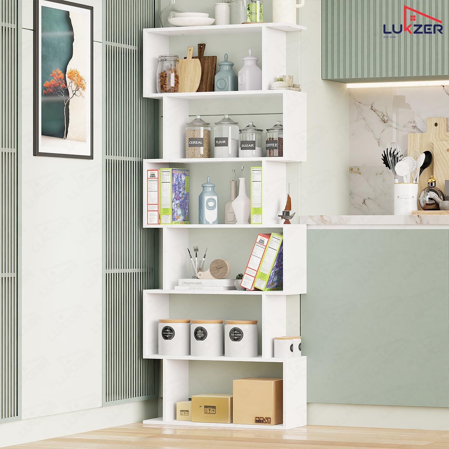 Lukzer 6-Layer S-Shape Ladder Bookshelf | Engineered Wood Open Display Rack | MR-002/White | Modern Bookcase for Living Room, Office & Study Room/Library | Home Storage Organizer (178x70x24 cm) DIY