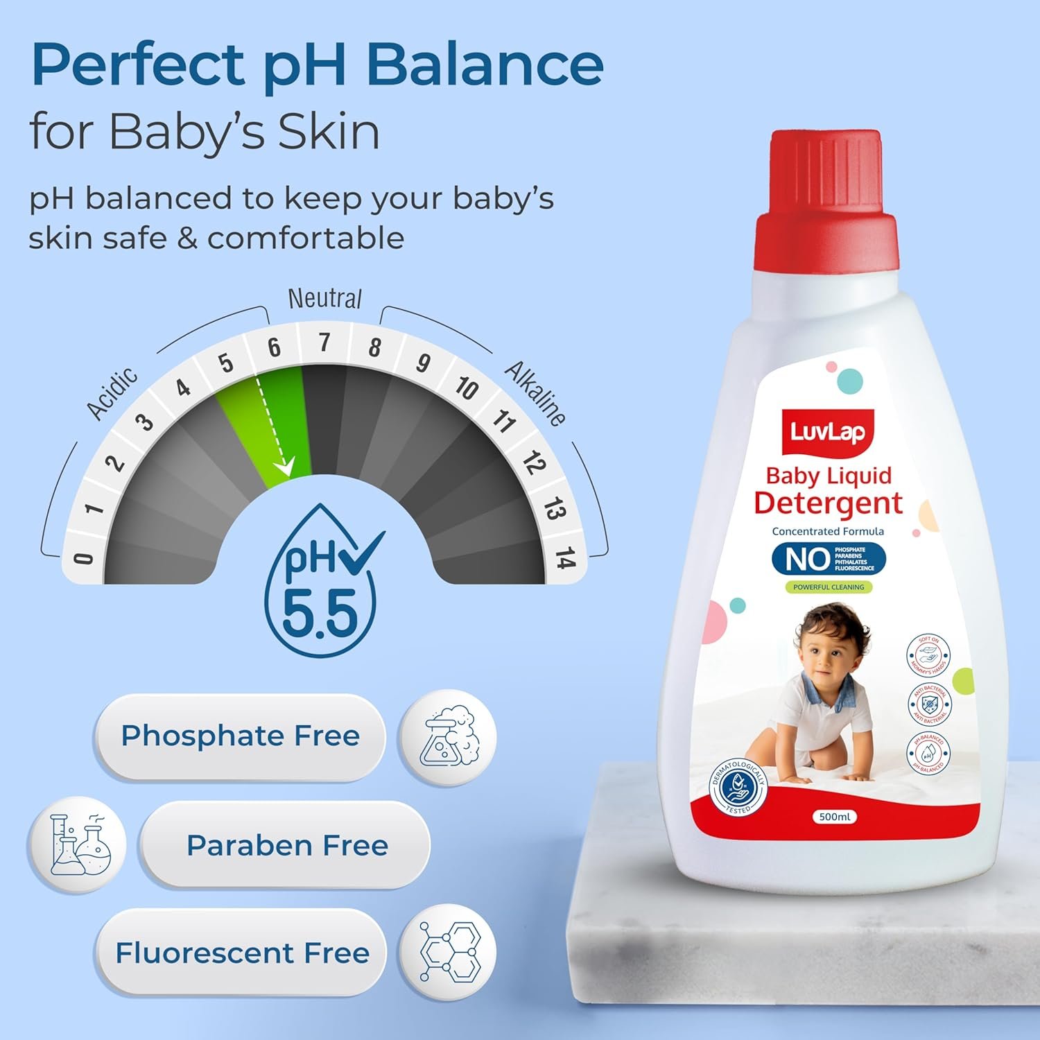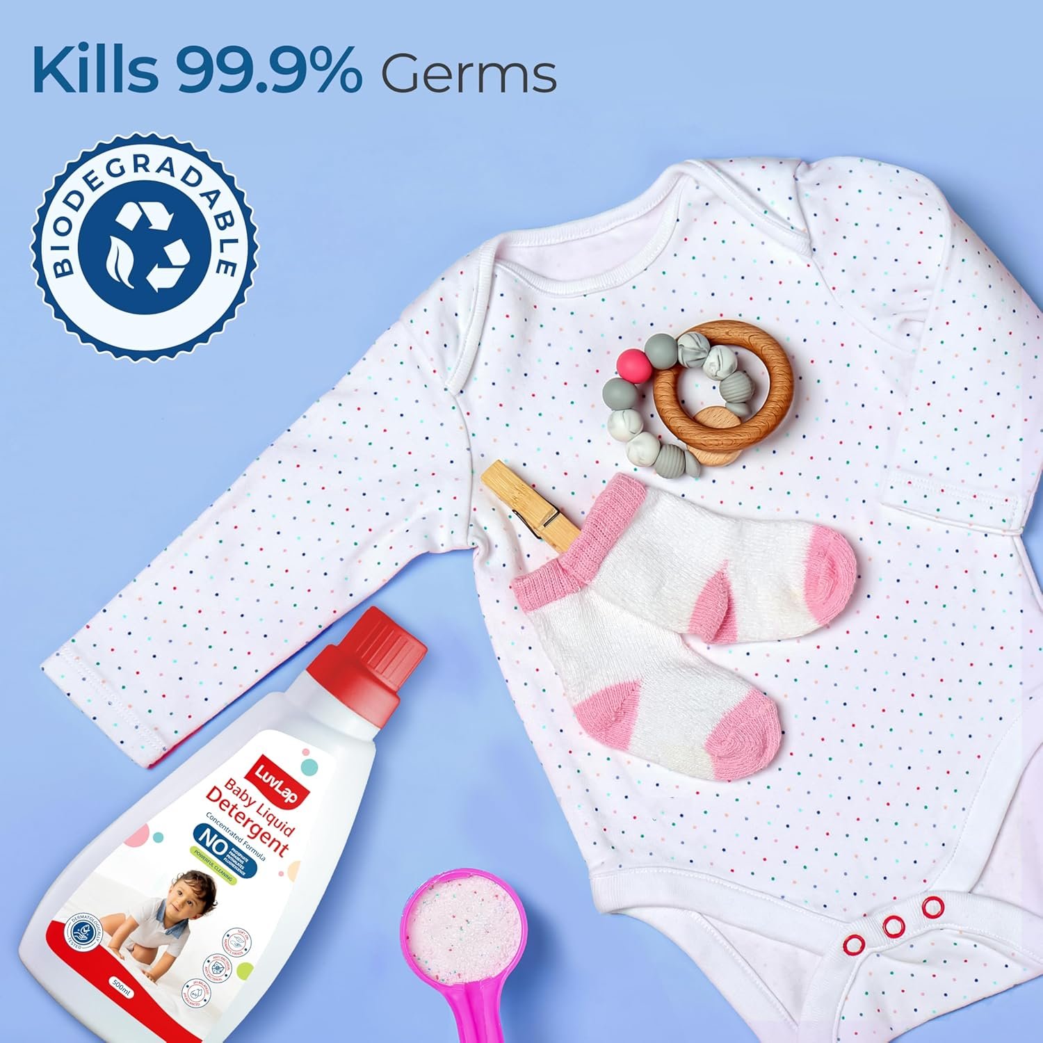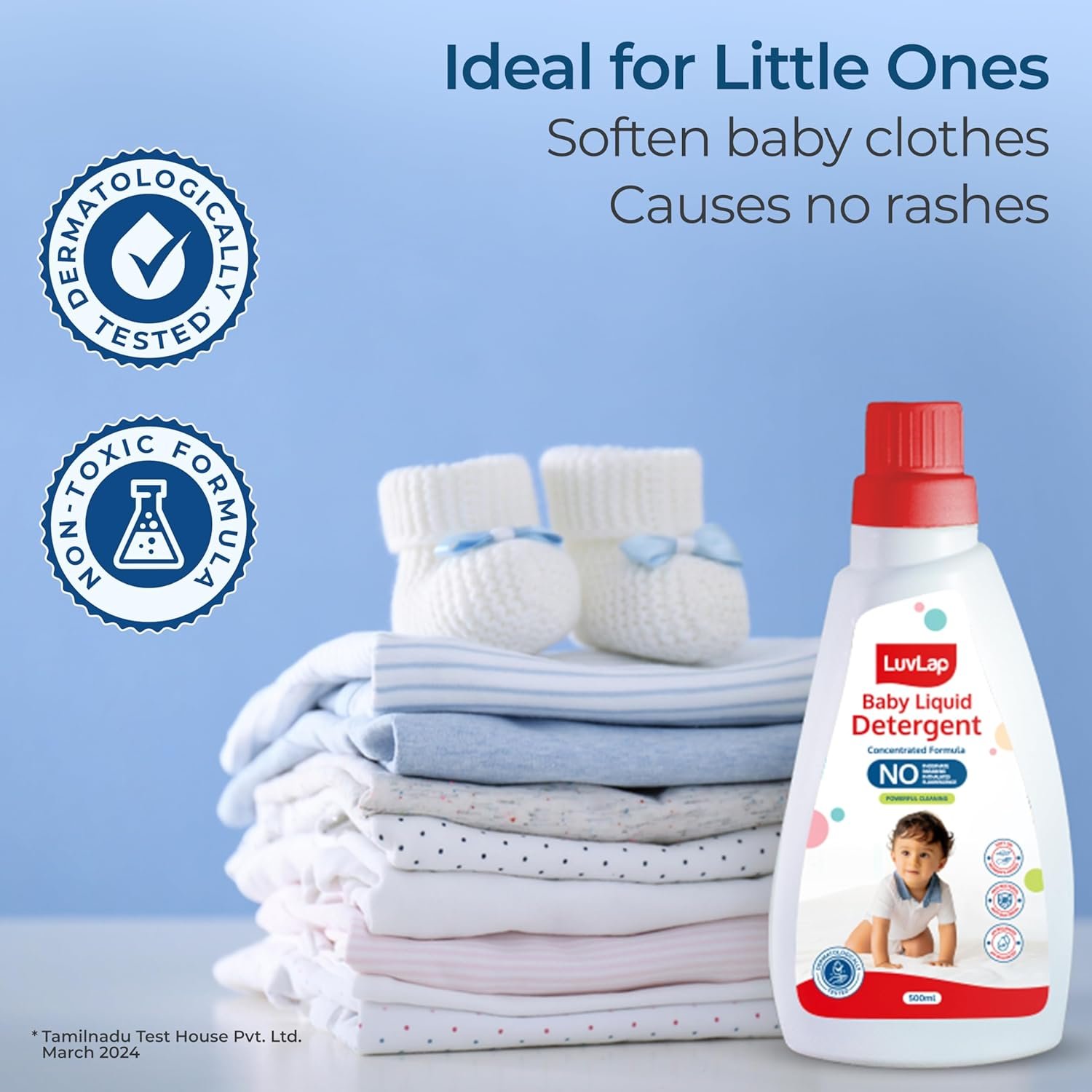 LuvLap Baby Laundry Detergent 500ml, pH Balanced, No harsh chemicals, Safe for mommy’s hands & baby’s skin, Anti-Bacterial, Softens clothes & Removes Stains & Odour, Dermatologically tested