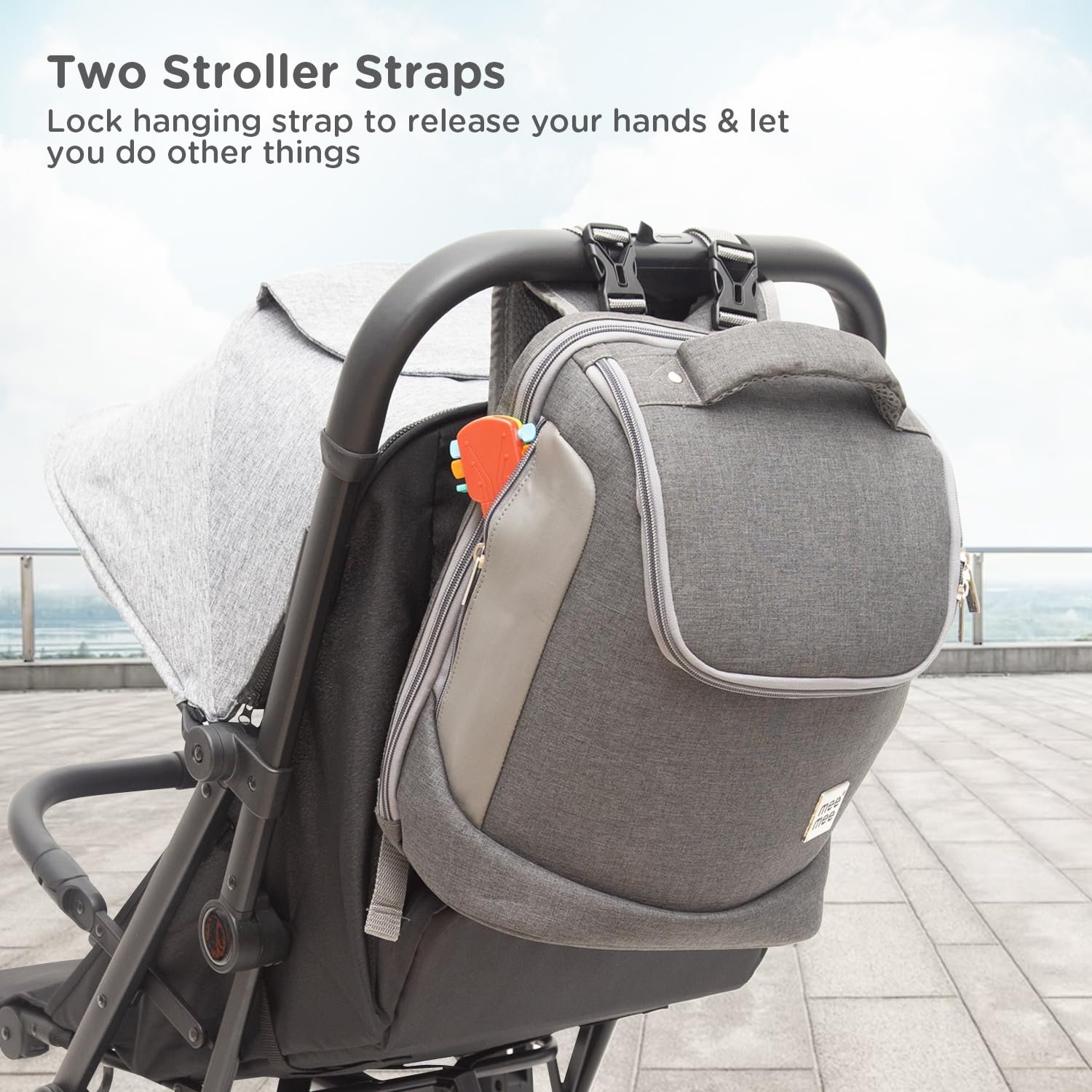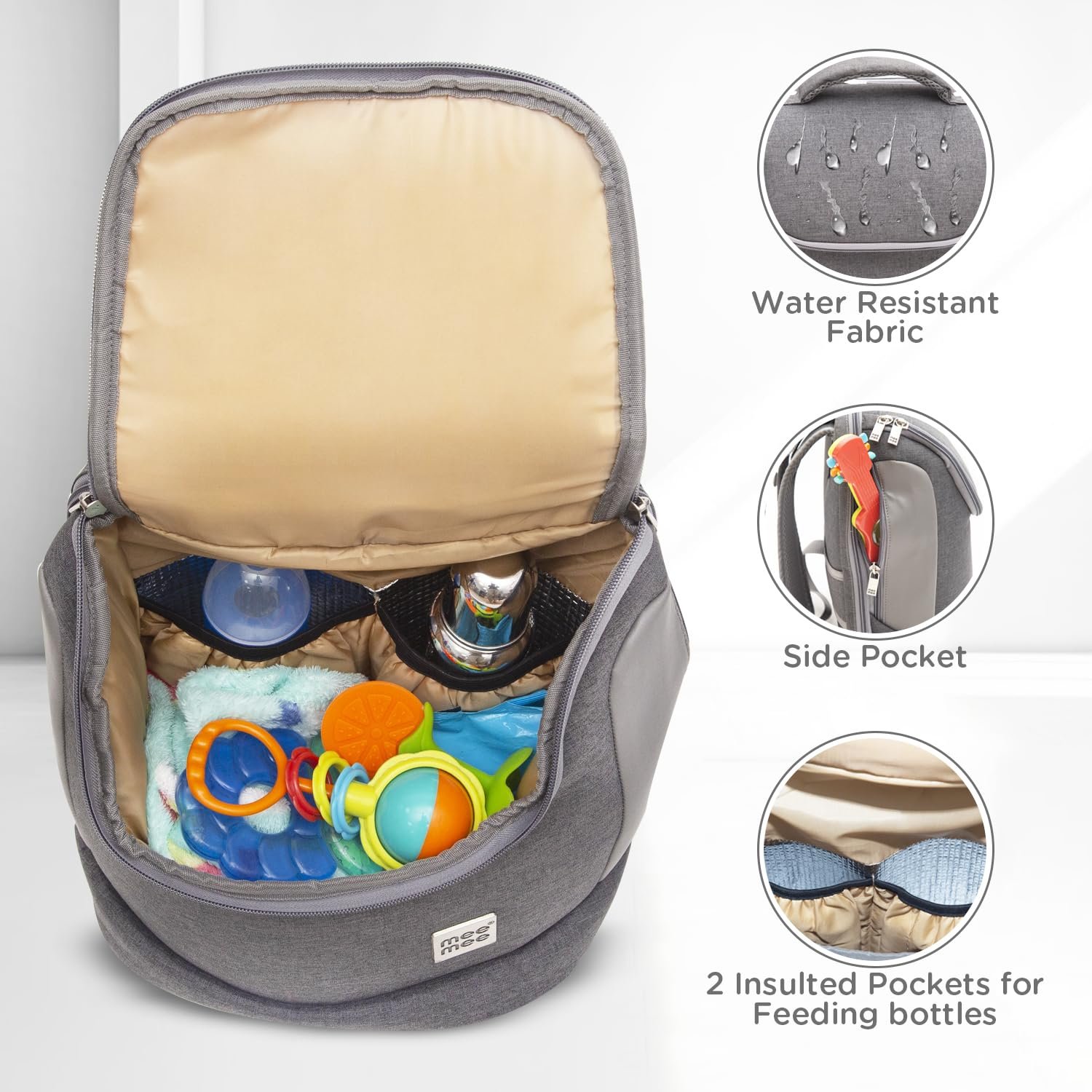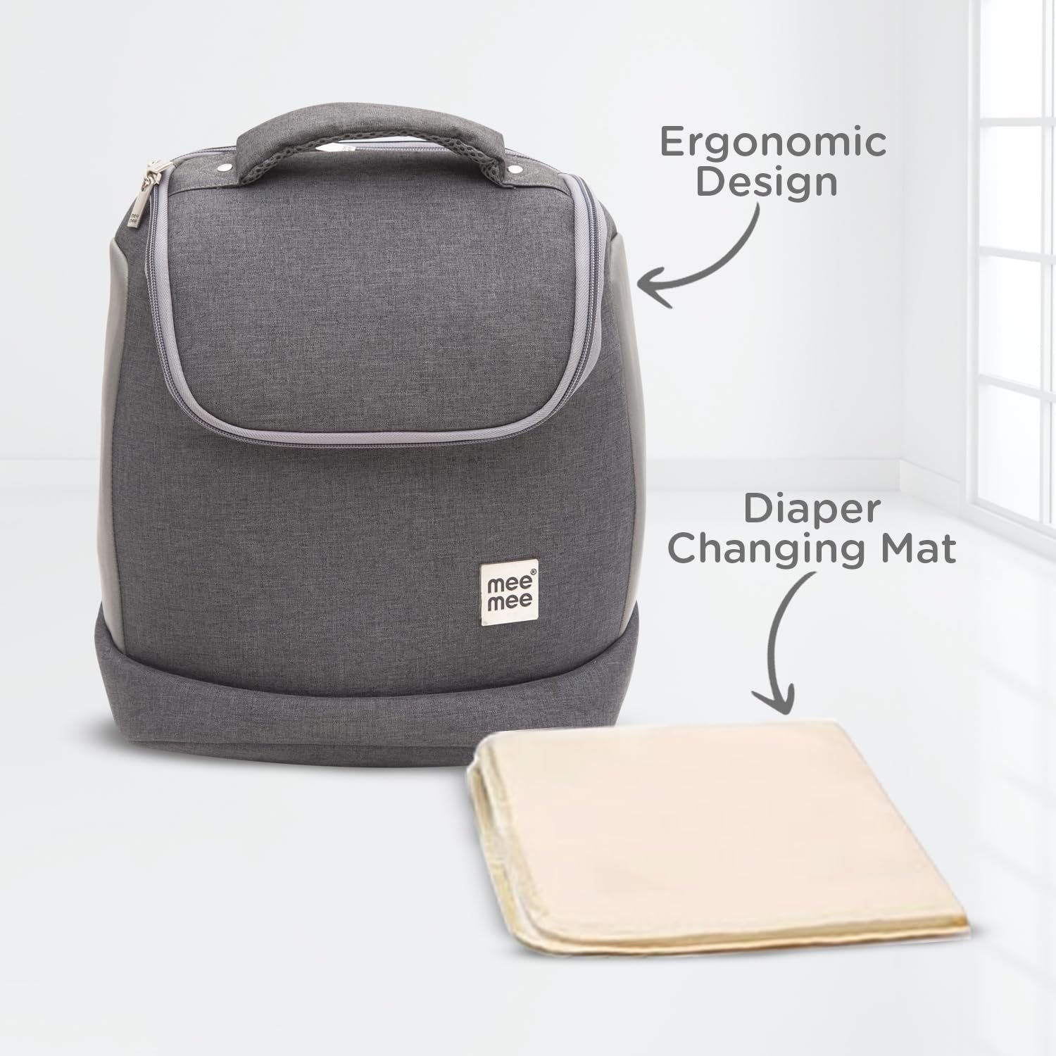 Mee Mee Nursing Diaper Bag (Grey) | Waterproof Travel Backpack with Adjustable Strap | Spacious & Stylish Mama Bag with 2 Bottle Pockets & Diaper Changing Mat | Organizer for All Baby Essentials