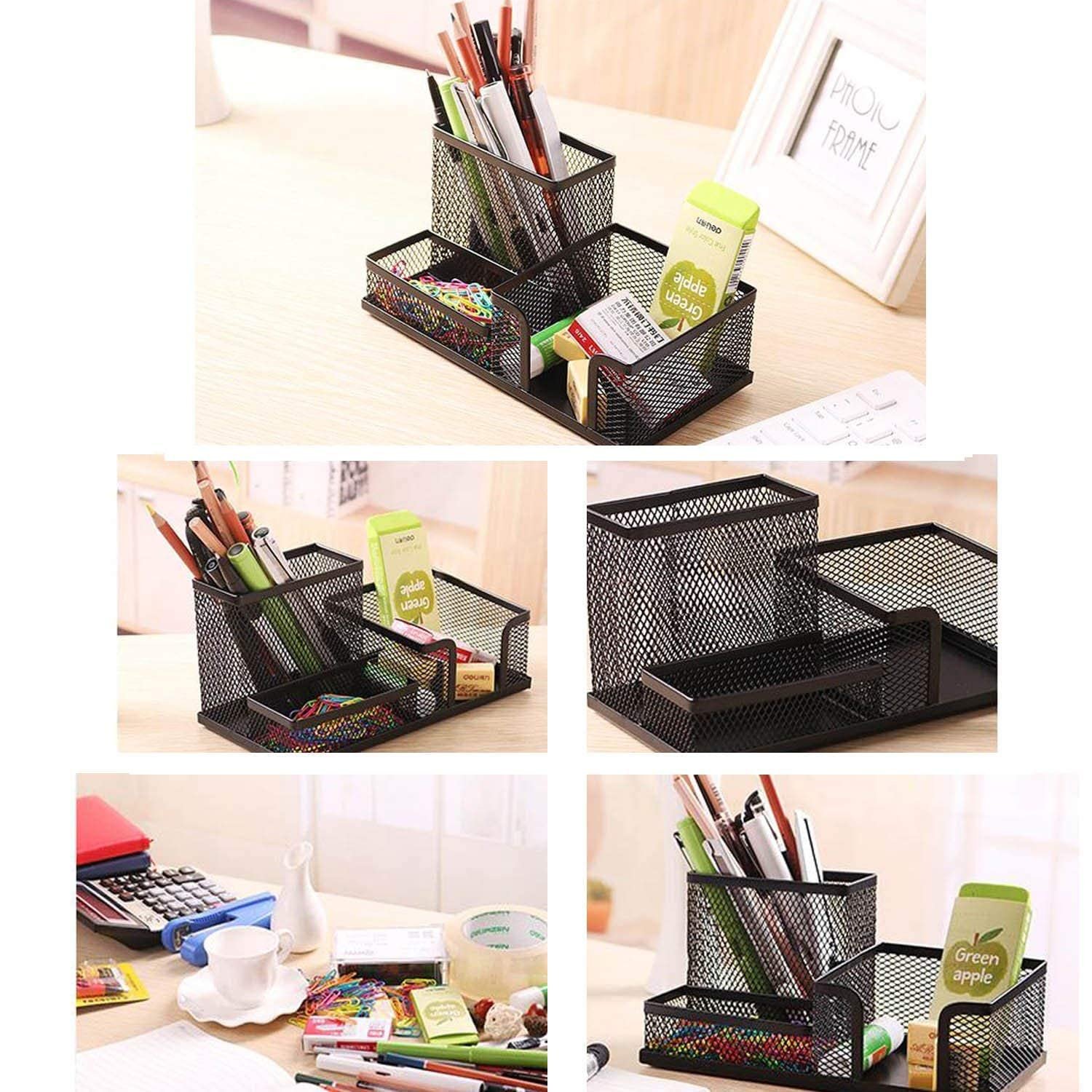 Be the first to review “Mesh Desk Organizer With 3 Compartments – Powder-coated Black Metal Pen, Stationery & Sticky Notes Holder, Desktop Caddy For Office, Home, School & Workspace (1Pcs)”