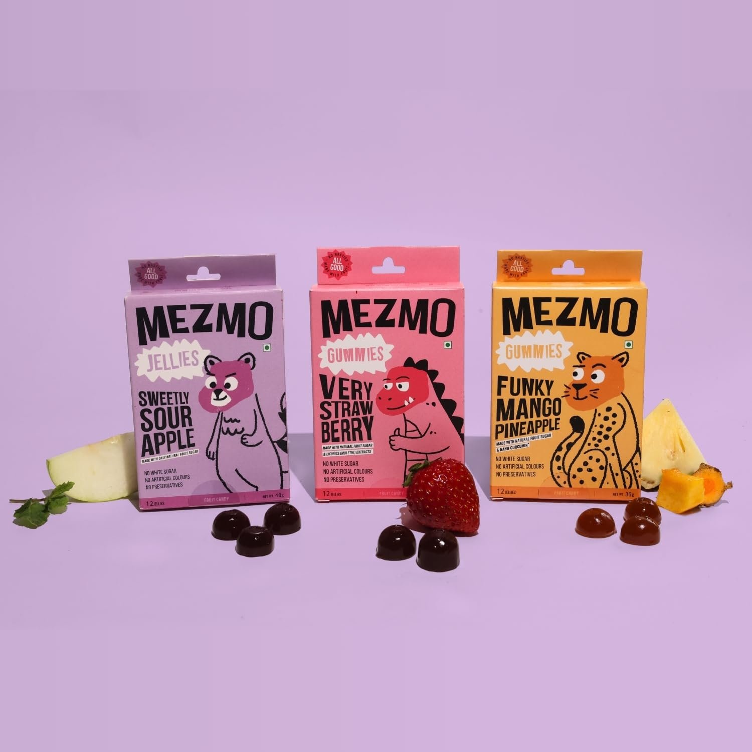 MEZMO Vegan Fruit Jellies (120g, Pack of 3) | Natural Strawberry Gummies for Kids & Adults | Zero Added Sugar, Gluten Free | Healthy Prebiotic Gut Friendly Snacks – Very Strawberry, Mango Pineapple, Apple