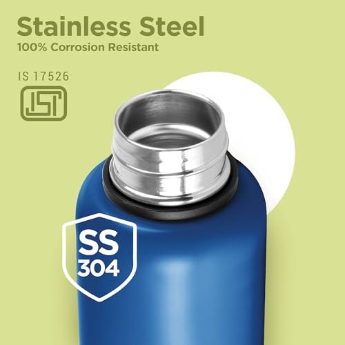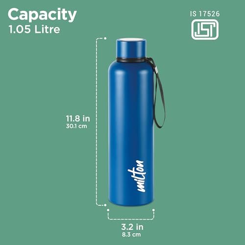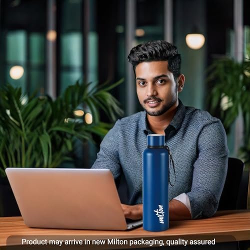 Milton Aura 1000 Thermosteel Water Bottle, 24 Hr Hot and Cold I Leak Proof Lid, ISI Certified I Vacuum Insulated I for Office, Gym, School I Dark Blue