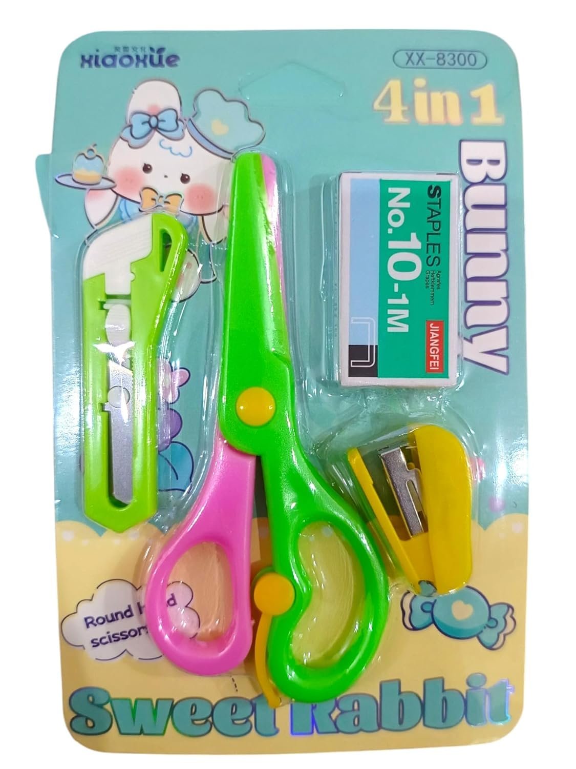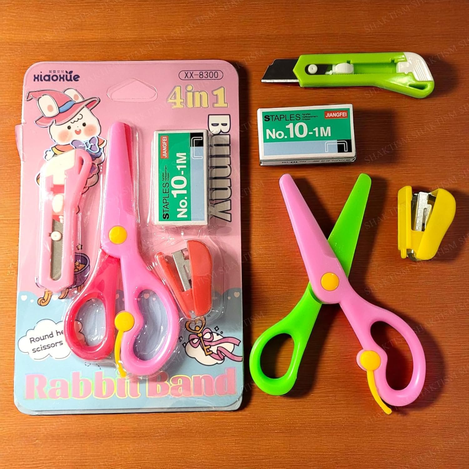 Mini Office Stationery Set with Stapler, Scissors, Washi Tape, 400 Staples, Mixed Colours – 1 Set Random Colour Dispatched