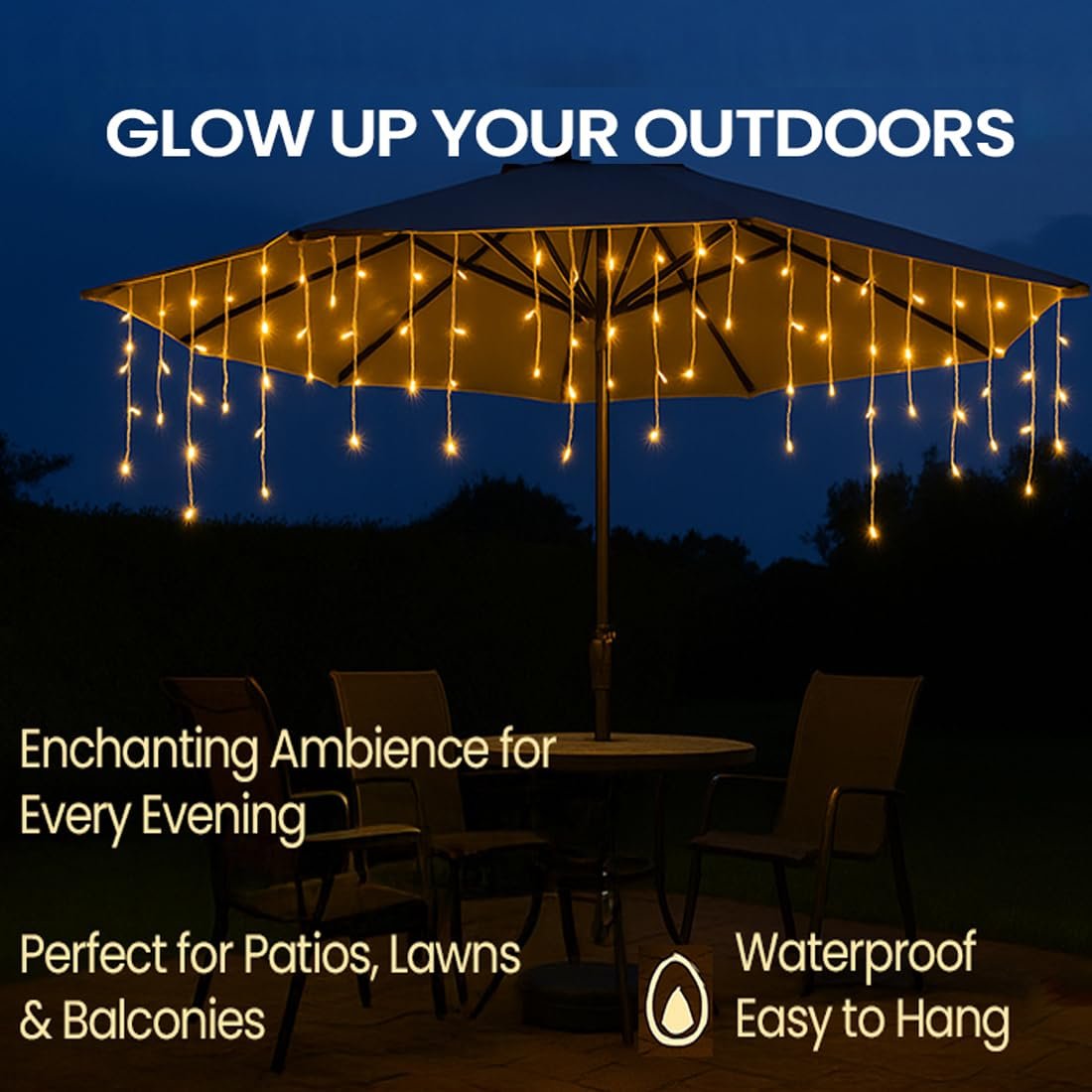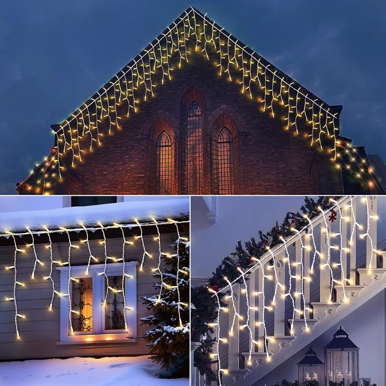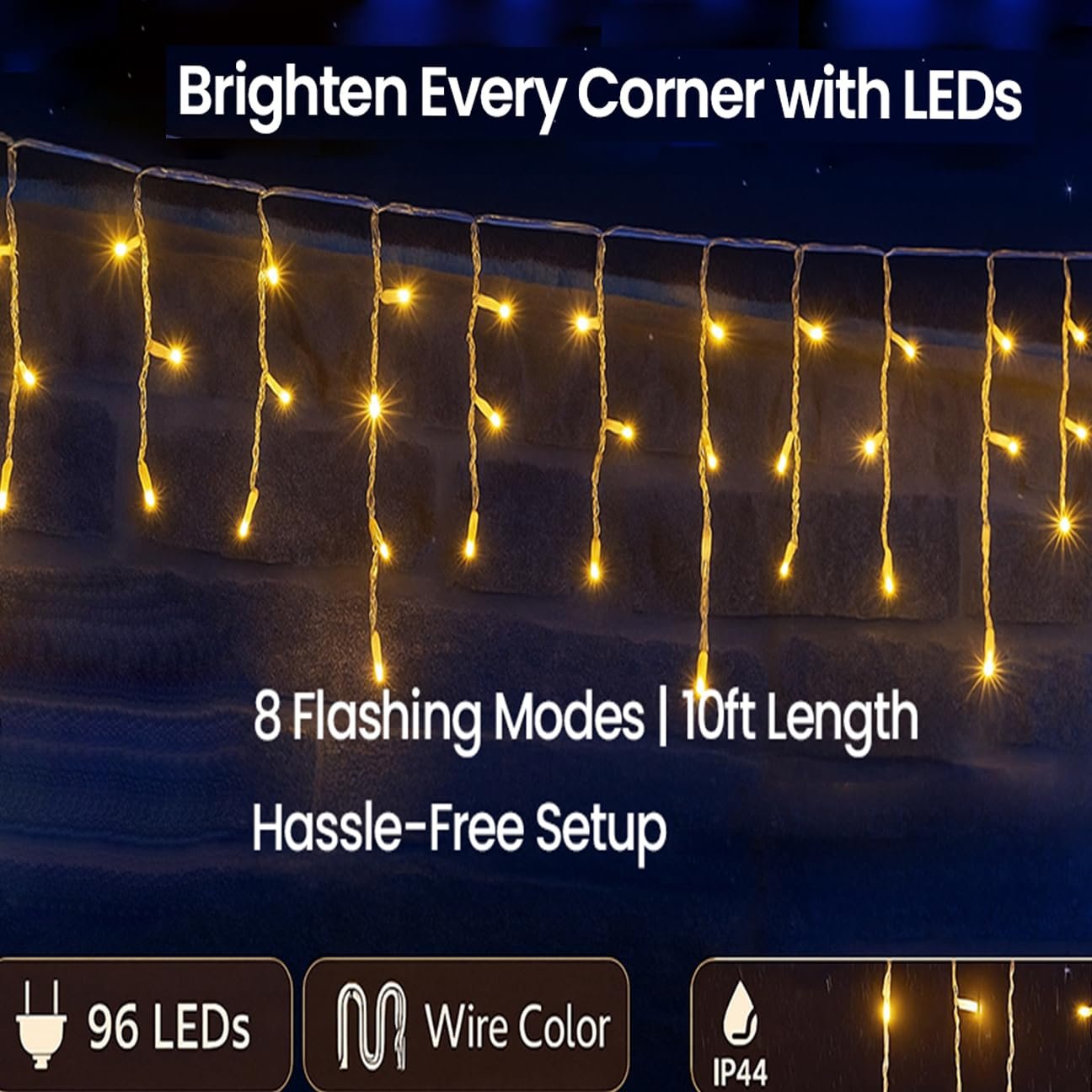 MIRADH Plastic LED Icicle Christmas Lights Outdoor/Indoor 10ft 16 Drops with 96 LED, 8 Lighting Modes, Icicle Lights, for Christmas Diwali Garden Wedding Party Patio Eave Decorations, White