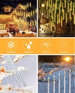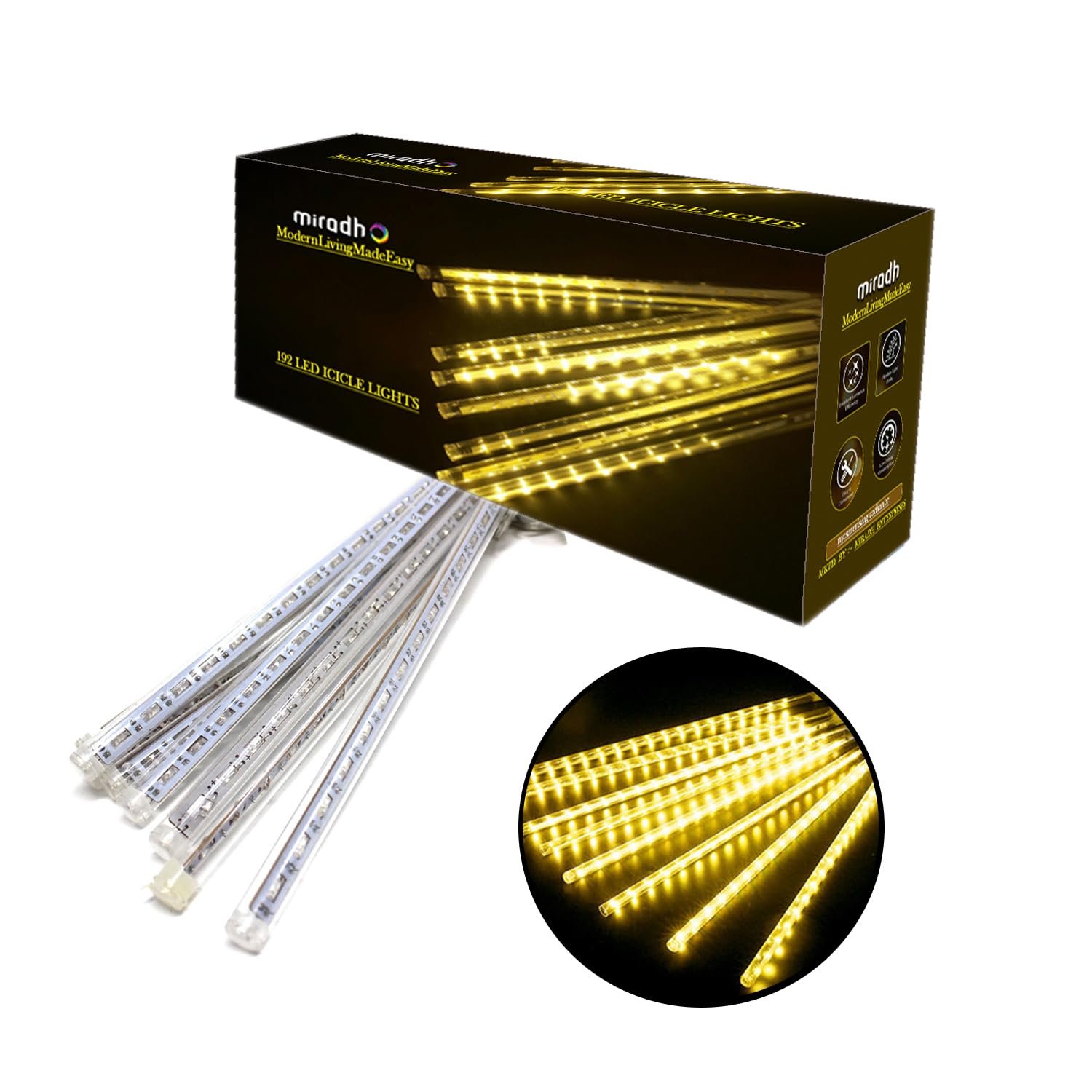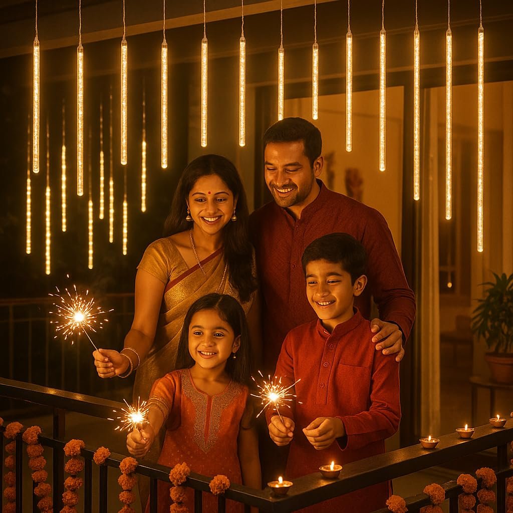 MIRADH Rain Drop LED Meteor Shower 192 LEDs 8 Tubes (11.8″) | Icicle Falling Effect for Diwali, Christmas, New Year, Home & Outdoor Decoration, Balcony, Tree, Party Decor (Warm White)