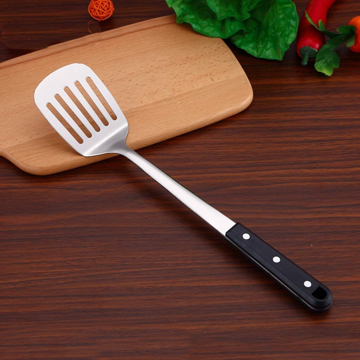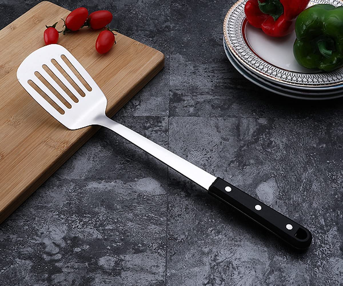 Mockery Stainless Steel Slotted Turner Comfortable Plastic Grip Handle Cooking Flipping Turning Frying and Grilling Refined Strainer for Kitchen Baking Dining Bar, 14 Inch
