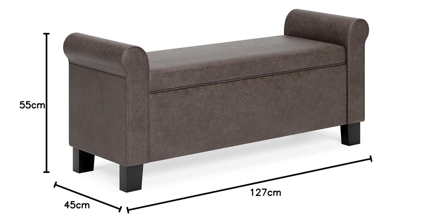 MODERN WAVE Durbin Suede Leather Upholstered Flip Top Storage Bench 2 Seater Sofa Couch Pouffe Sofa Bench Ottoman. (Brown)