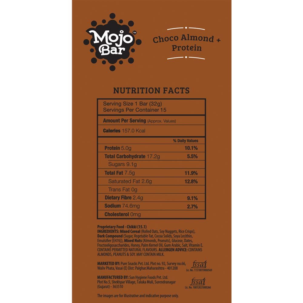 Mojo Bar Energy Bars Choco Almond & Protein | 100% Whole Grains, Nut & Fruit | High Energy & Granola Bars | 5g Protein Snack | Pack of 15 x 32g Energy Bars | Gluten Free & No Preservatives