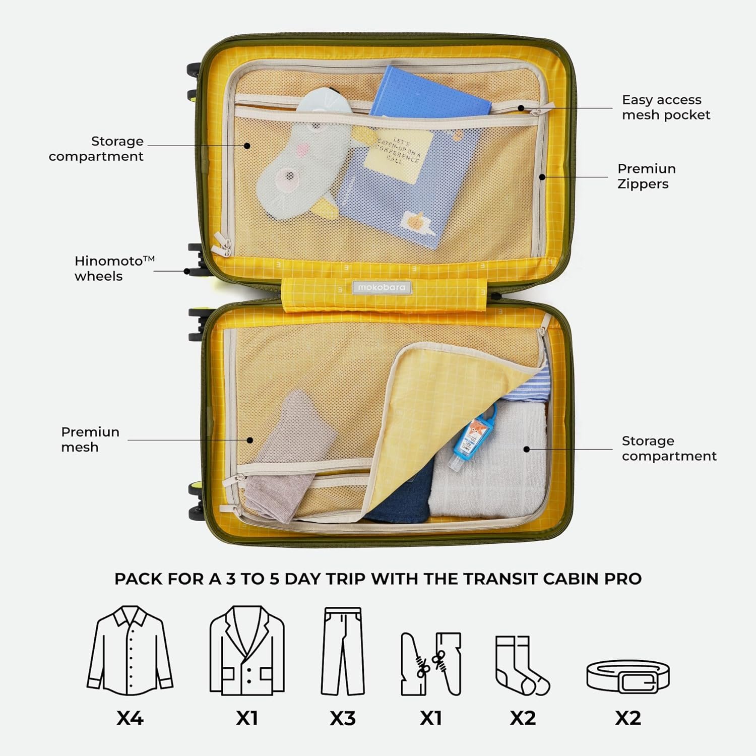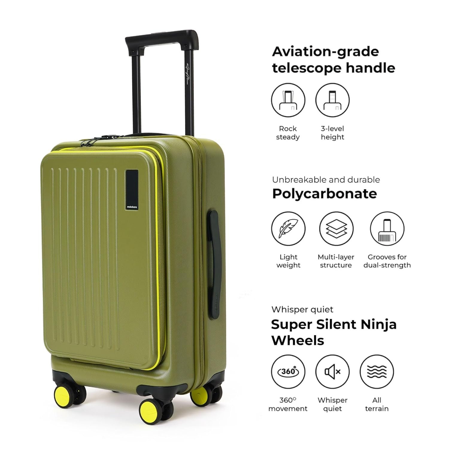 MOKOBARA The Transit Cabin Pro Luggage Small Cabin Size Polycarbonate Hardsided 8 Hinimoto Wheels Suitcase for Travelling (So Matcha Limeray),56 Cm (So Matcha Limeray 2.0)