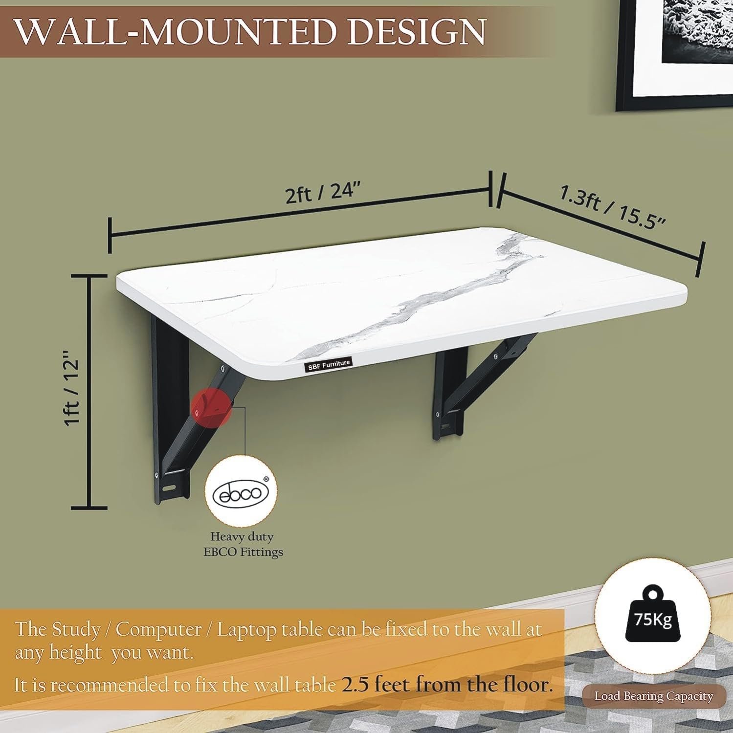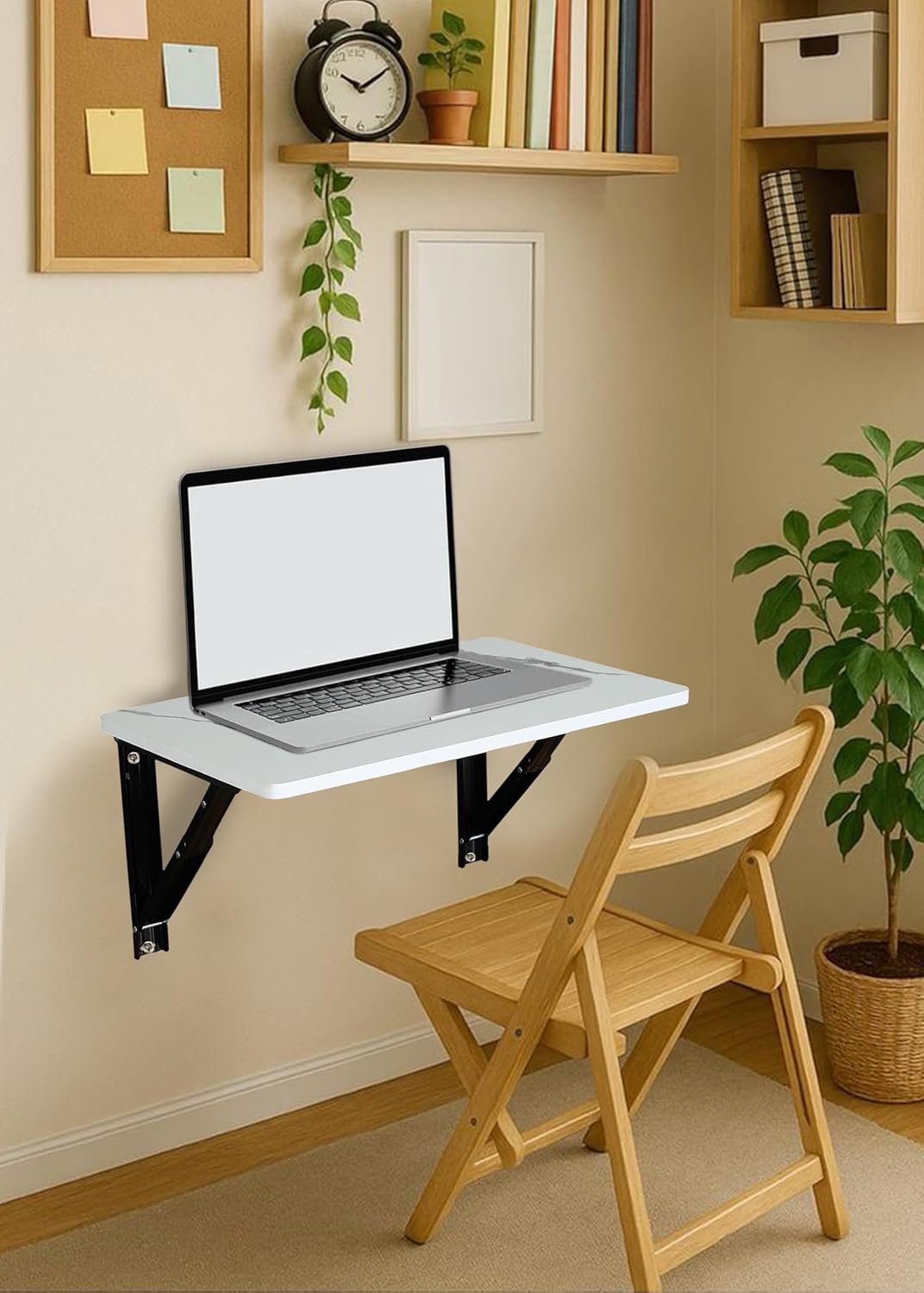 Multipurpose Wall Mounted Shelf Folding Study Table,Office Tables,Laptop Tables,Study Table(White Marble) DIY(Do-It-Yourself)