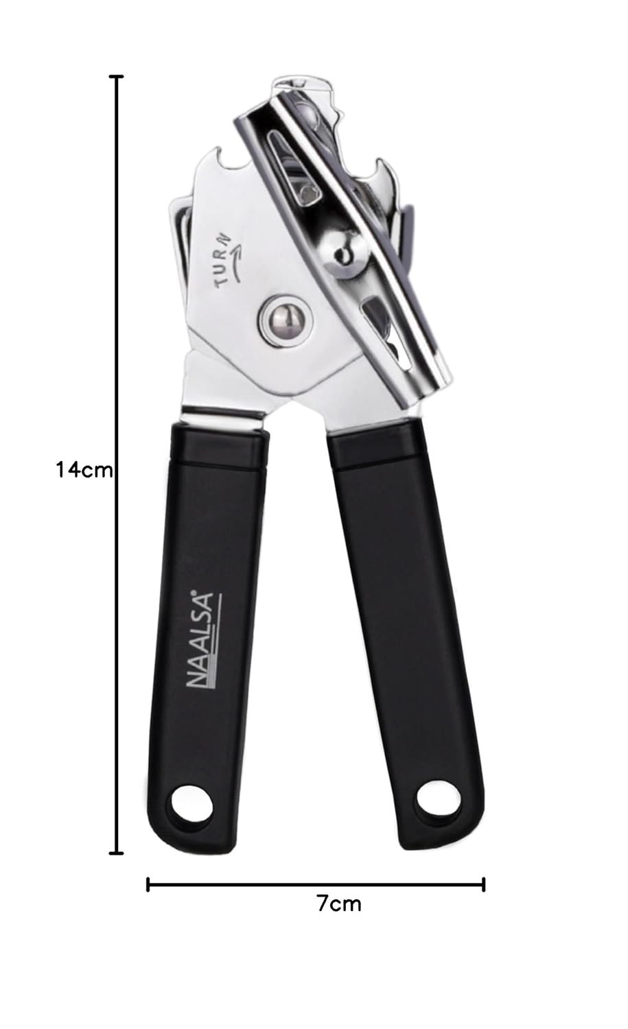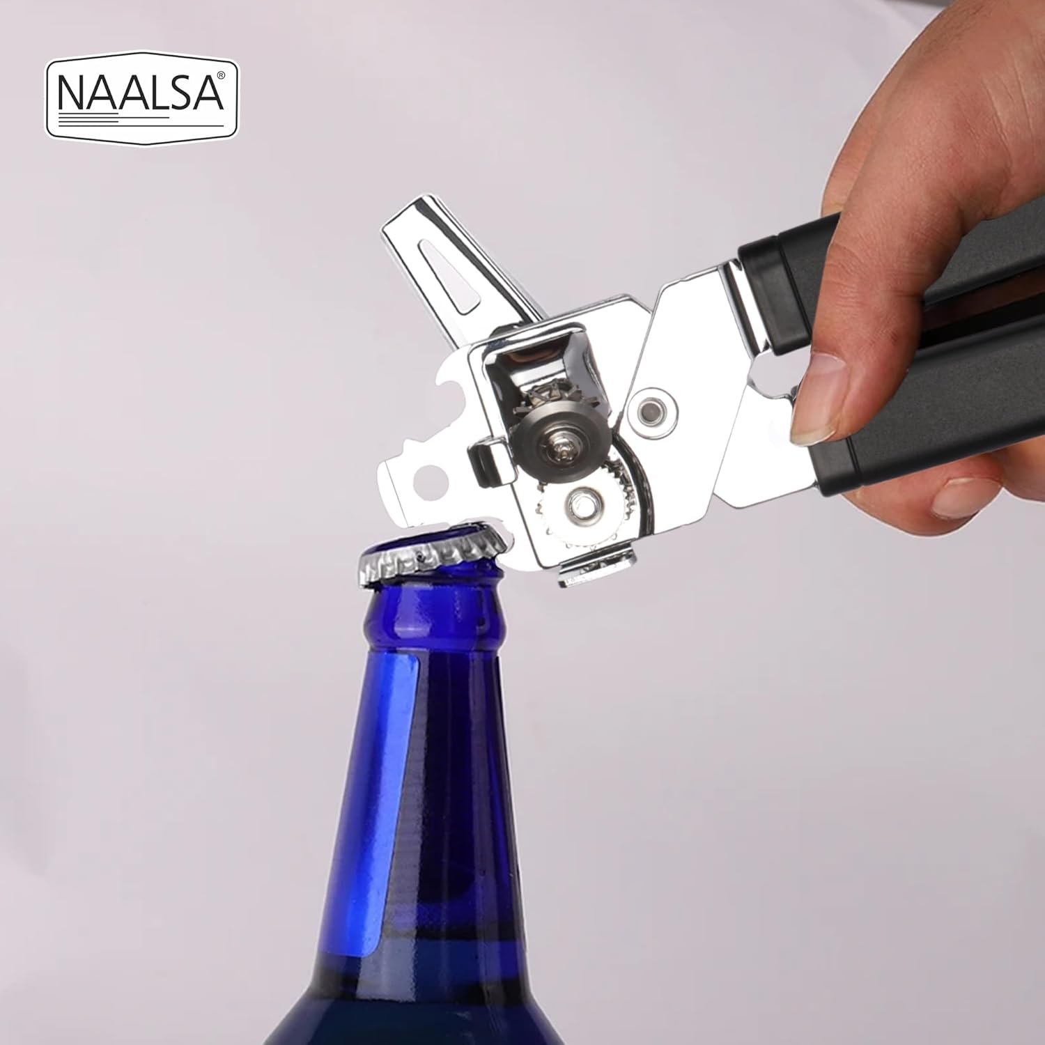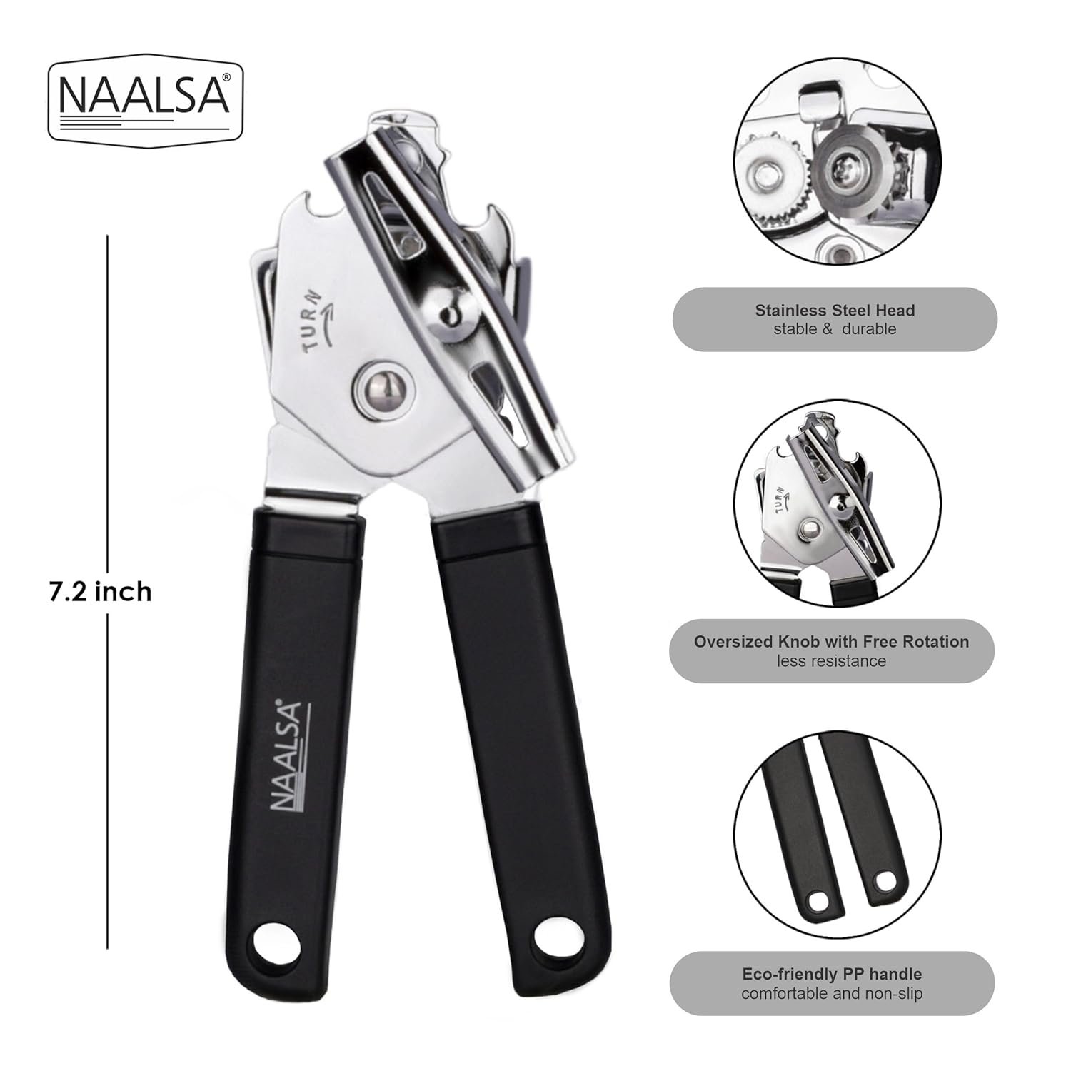 NAALSA 2in1 Munual Multi Functional Tin Can Opener with Bottle Opener Stainless Steel with Anti Flip Grip Heavy Duty Kitchen Household (Can Opener 1pc)