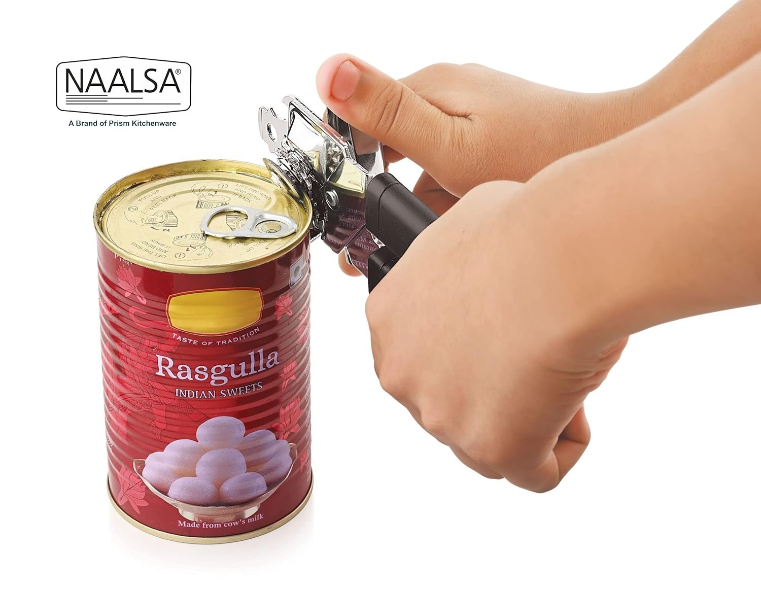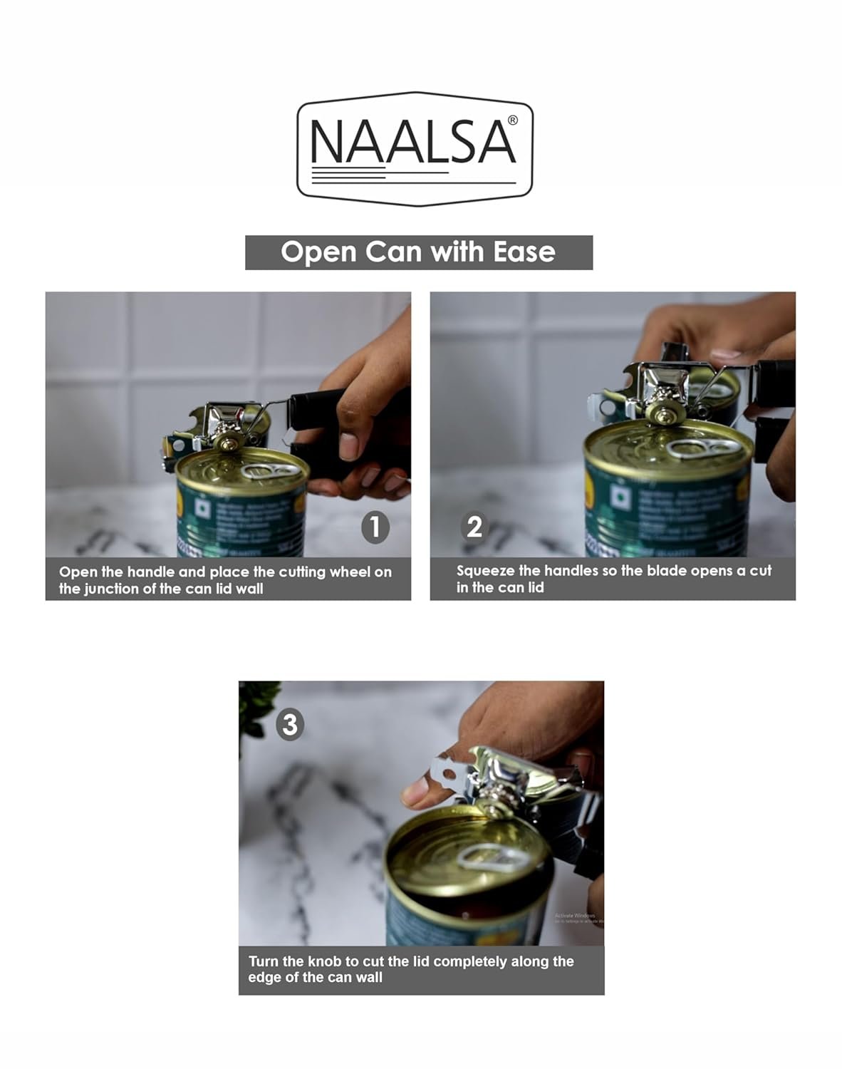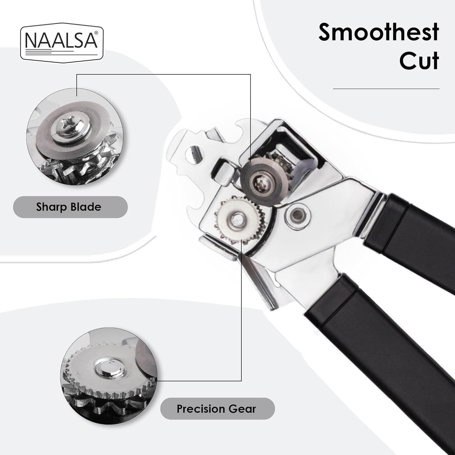 NAALSA 2in1 Munual Multi Functional Tin Can Opener with Bottle Opener Stainless Steel with Anti Flip Grip Heavy Duty Kitchen Household (Can Opener 1pc)