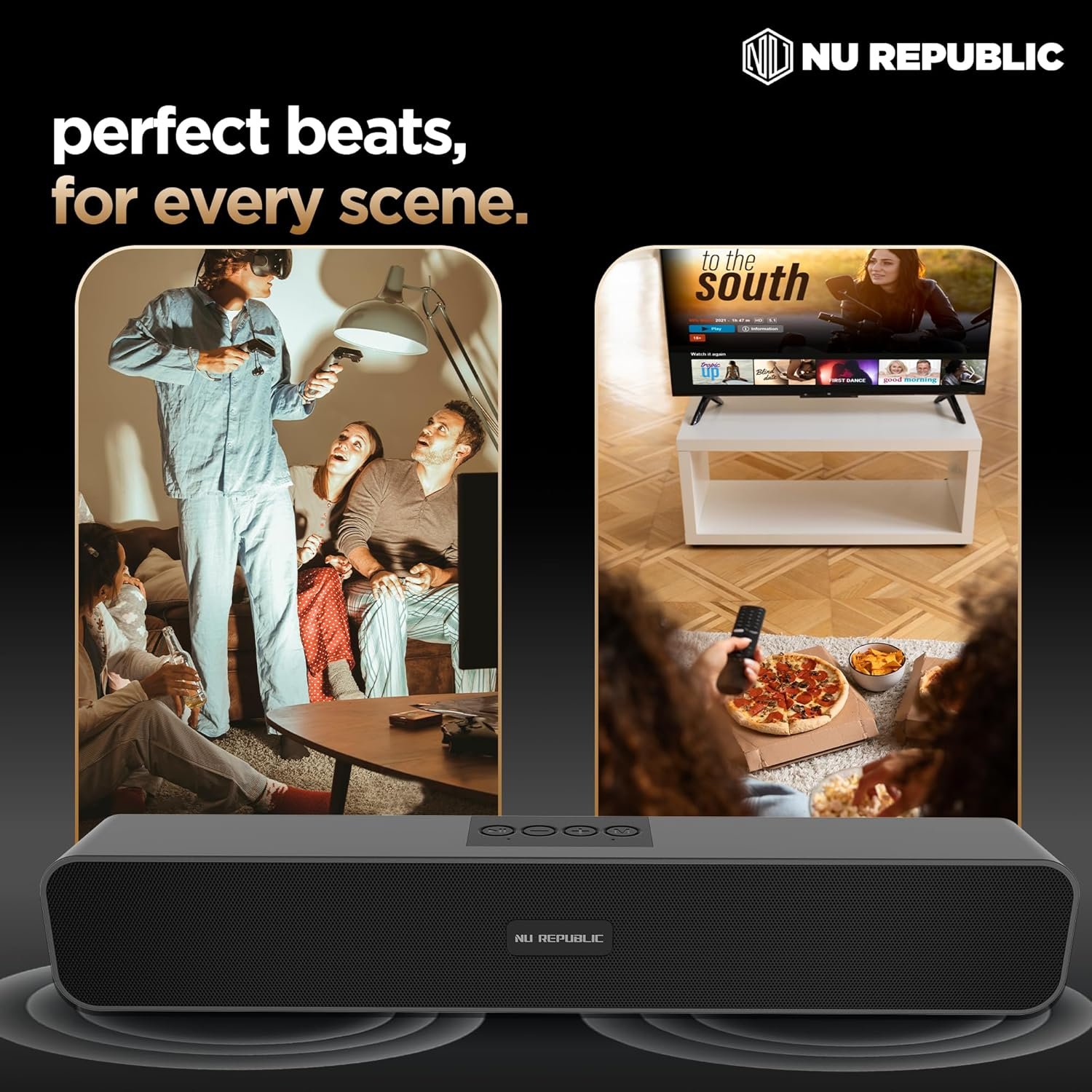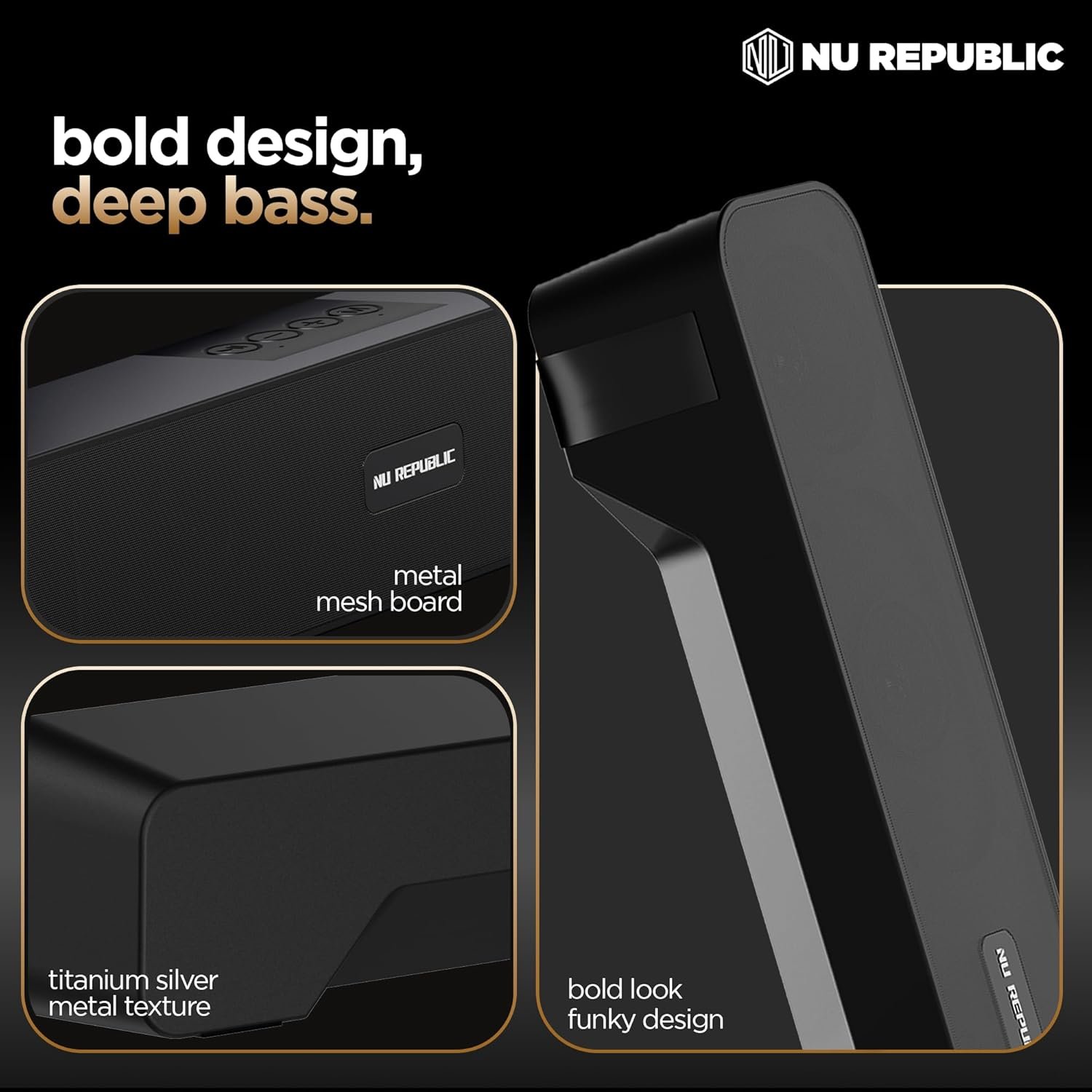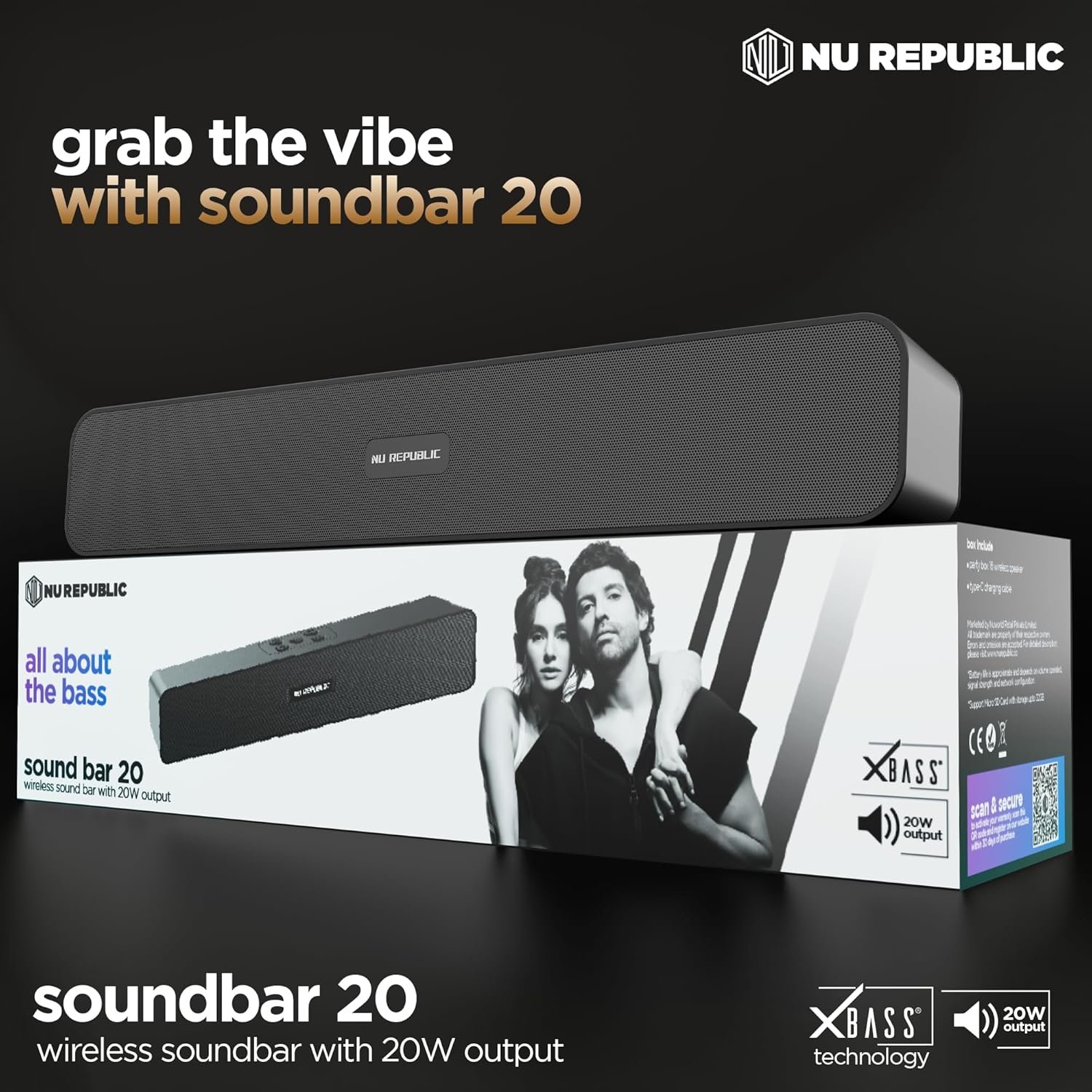 Nu Republic Soundbar 20 Bluetooth Soundbar with X-Bass Technology, 52mm Dynamic Drivers, Upto 12 Hrs Playtime, 20 W Output, Aux/USB Port (5.0 Channel) (Black)