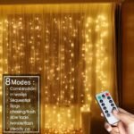 One94Store Plastic Fairy Curtain String Lights for Wall Decoration, Warm White USB Powered 300 LED’s, 8 Flashing Modes, Window Backdrop Lights for Bedroom, Party, Diwali, Christmas – 3×3 Meter