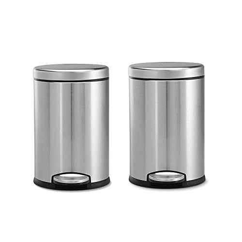 OPR Stainless Steel Plain Pedal Dustbin with Lid | Trash Can Round Shape Dustbin for Bathroom, Home, Kitchen, washrooms, Room and Office- Pack Of 2 (5 Litre)