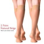PALAY® 2Pairs Womens Sheer Knee High Stockings, Ultra Stretchable Trouser Socks Over Summer Calf Stockings for Airplane, Flight, Travel Circulation