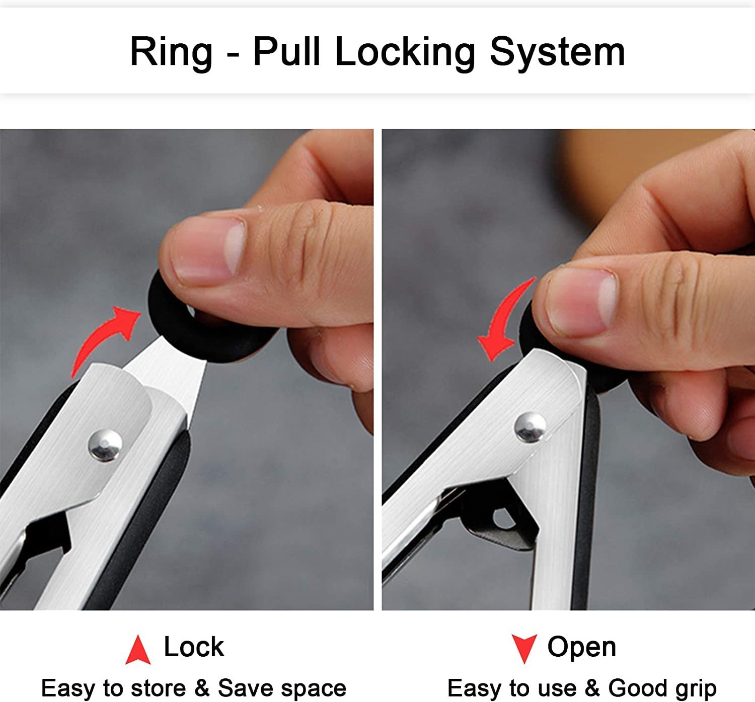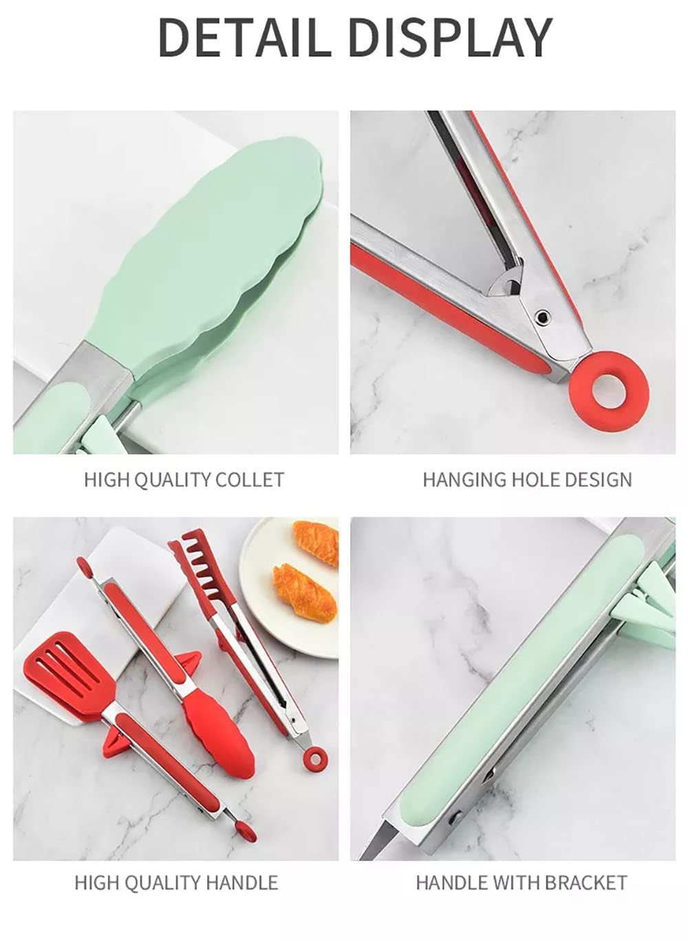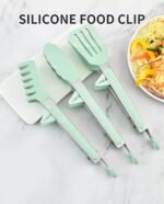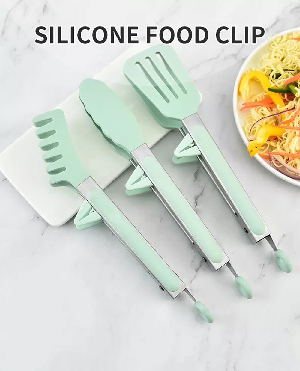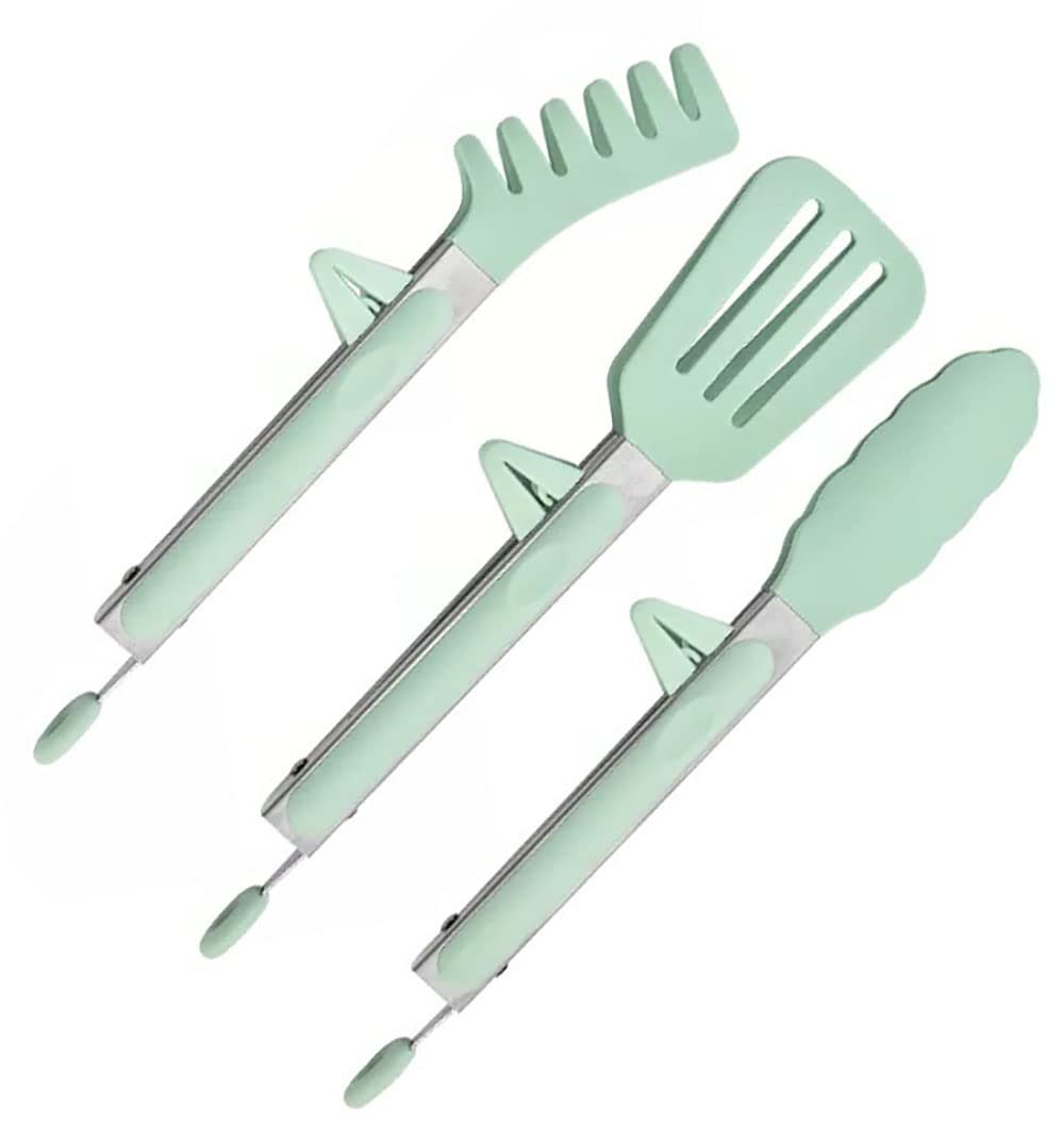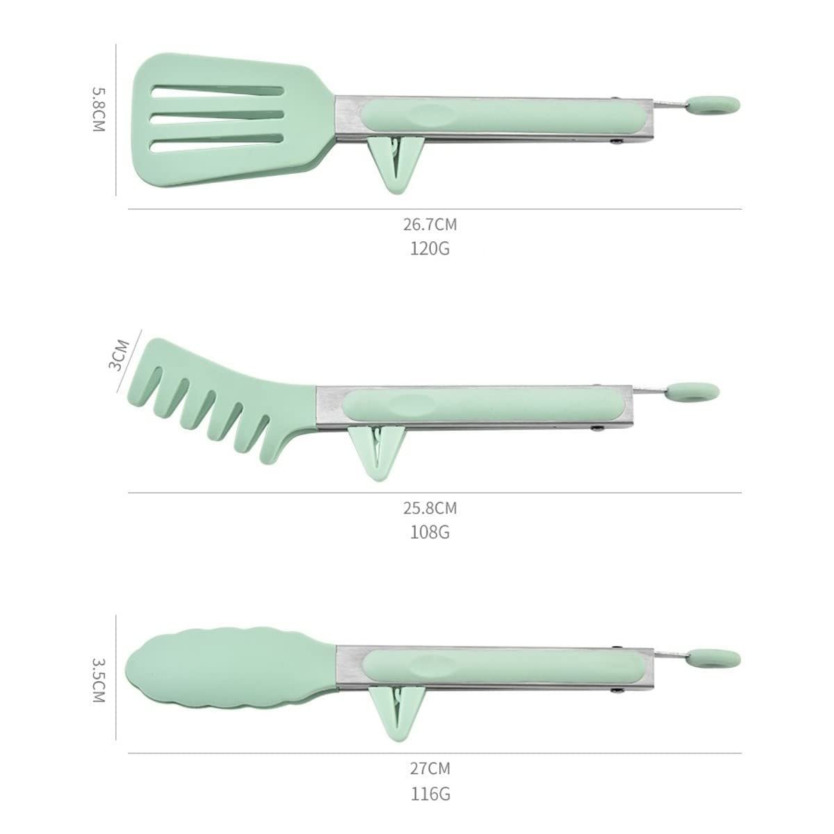 pepplo 3in1 Silicone Kitchen Cooking Tongs Set, Stainless Steel Nonstick Food Tong Silicone Tips for Serving Spaghetti Steak Pizza Salad(Green)