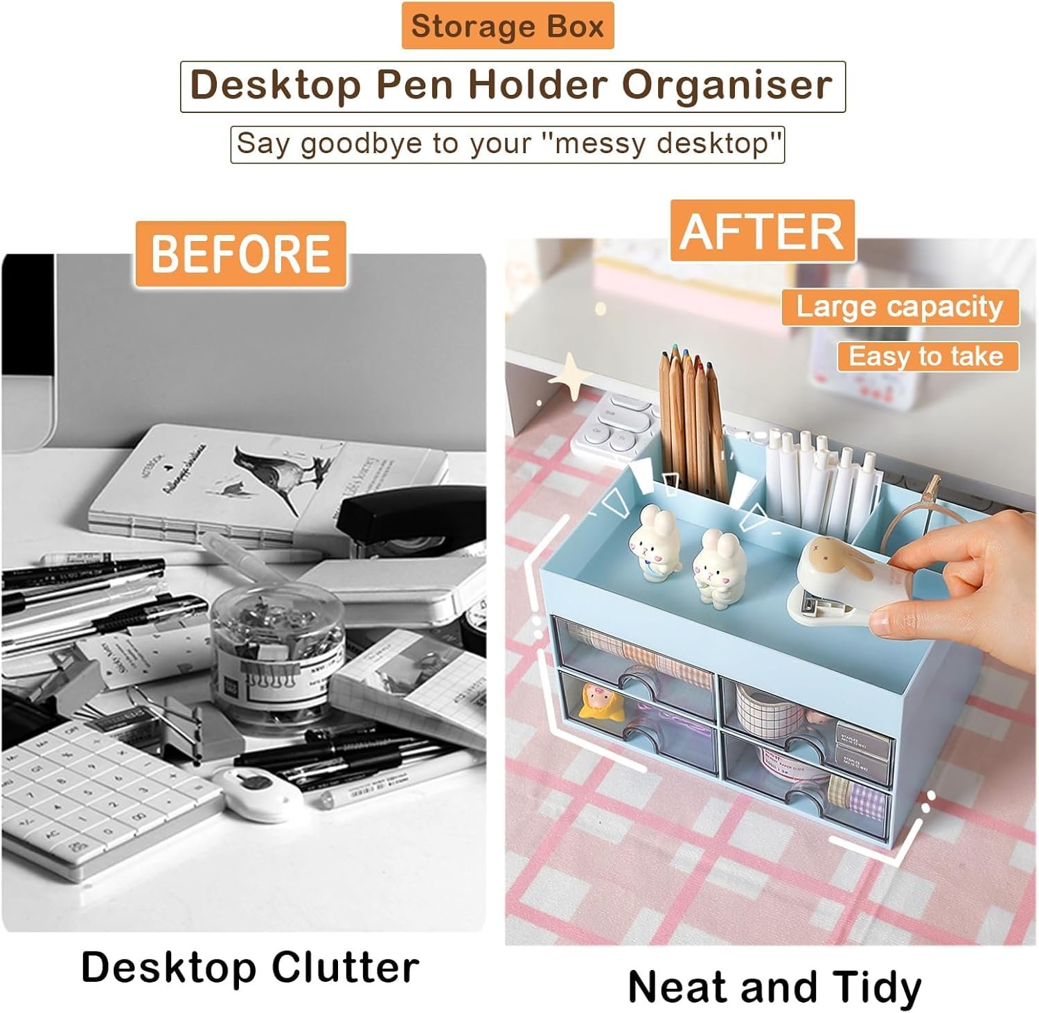 Be the first to review “Plastic Multi-Functional Desk Organizer With 4 Compartments & 4 Drawer Desktop Office Supplies Stationery Storage Box Cosmetic Organizer For Pens Staplers Clips Sticky Notes (Blue)”