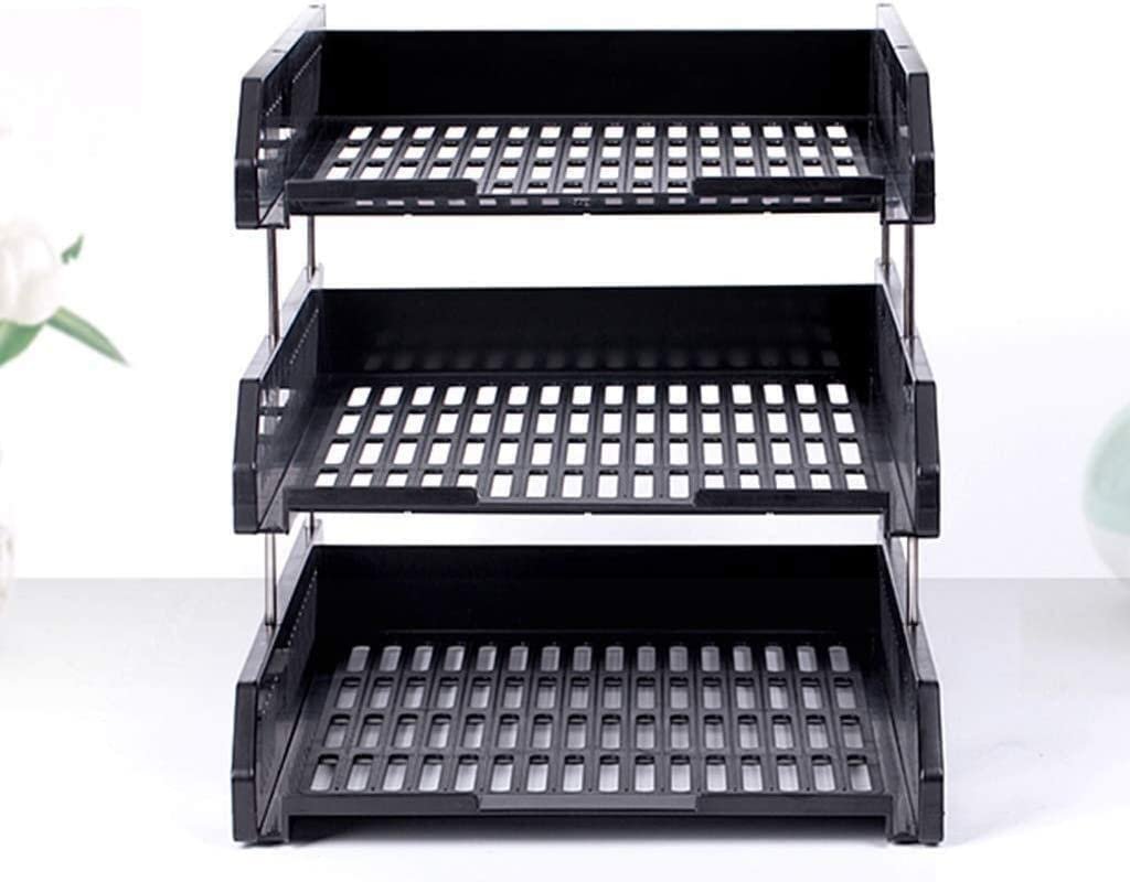 Plastic Office Stationery Files Layer Rack | Foldable Office Desk Accessories | Durable & Sturdy | Easy Assembly | Efficient Organizer | File Tray Rack ABS Plastics -3LAYER (BLACK)