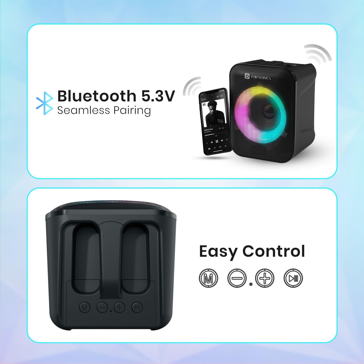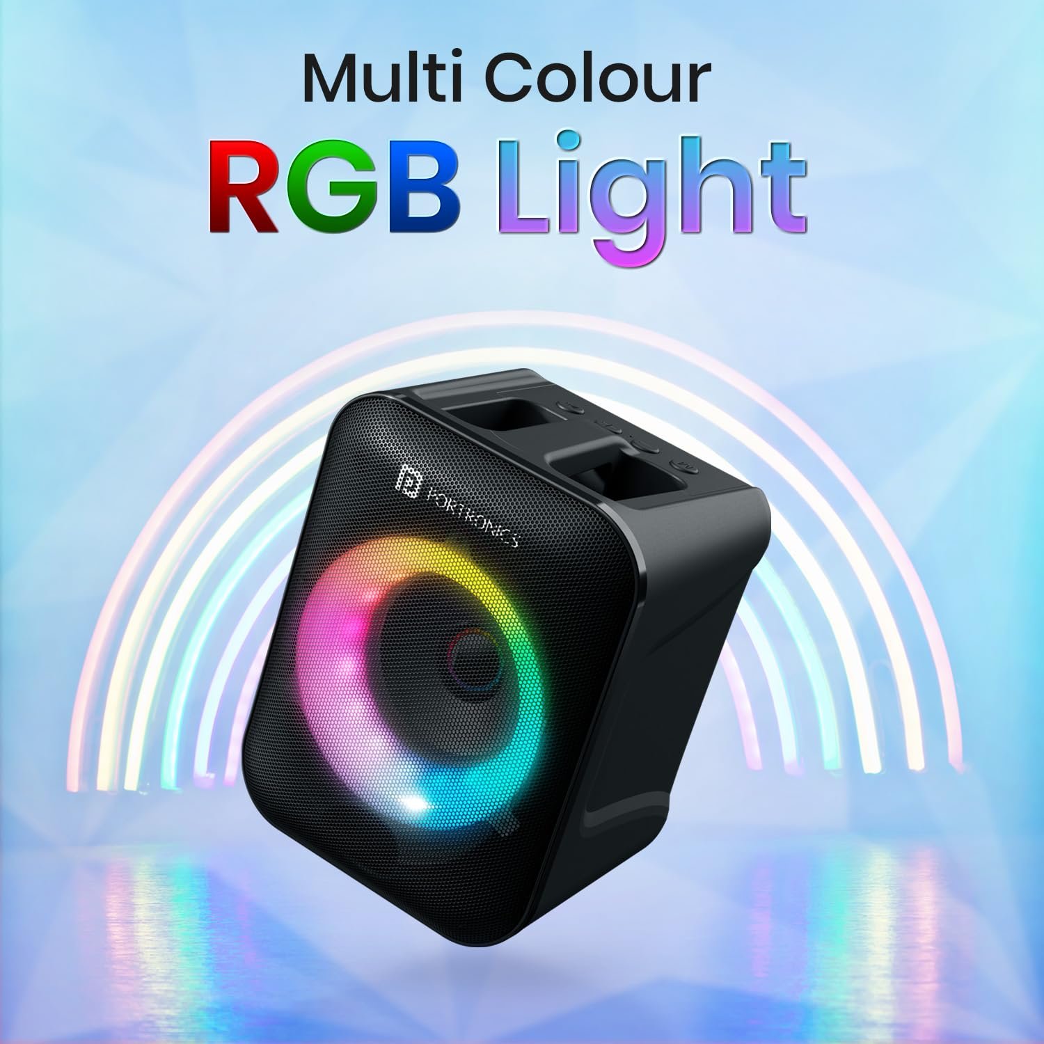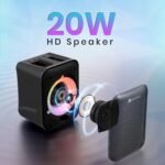 Portronics Apollo One 20W Wireless Bluetooth Portable Speaker with Wireless Karaoke Mic, 5 Hour Playtime, RGB LED Light, Bluetooth V5.3, Easy Grab Handle, USB/AUX in/TF Card, Type C Charging(Black)