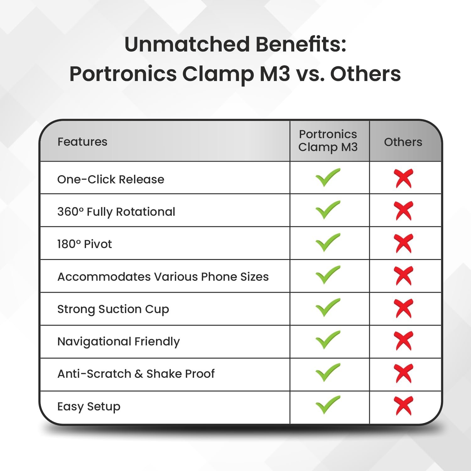 Portronics Clamp M3 Adjustable Car Mobile Phone Holder Stand for Dashboard & Windshield, 360° Rotational, Strong Suction Cup, Compatible with 4 to 6 inch Devices(Black)