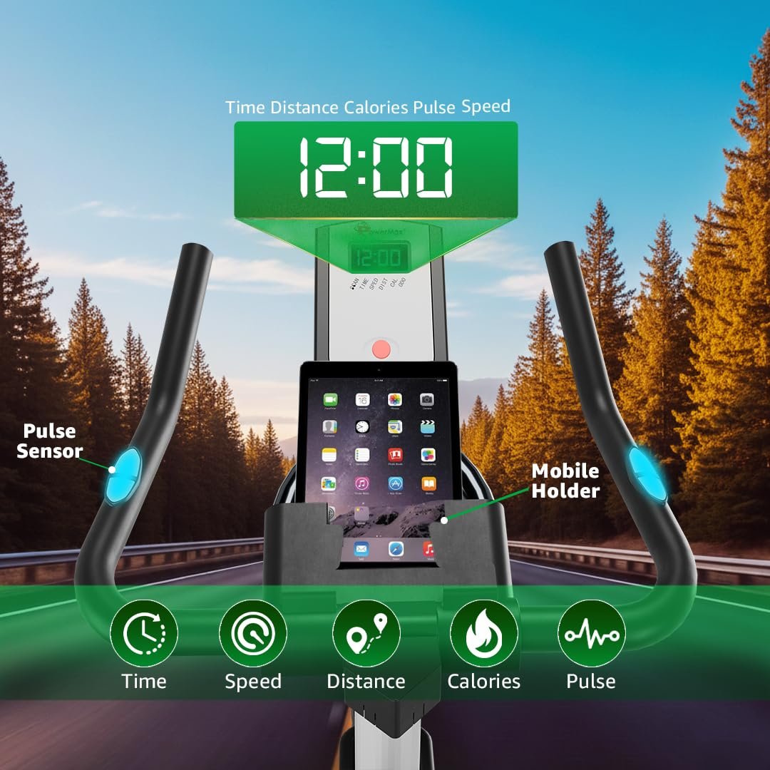 Be the first to review “PowerMax Fitness BS-125 Spin Exercise Bike For Home Use,16Mm 6Kg Flywheel,Max User Weight 130Kg,LCD Display,2Pc Crank,Heart Rate Sensor,Knob Braking,Adjustable Foot Strap And Seat,Ipad Holder,Black”