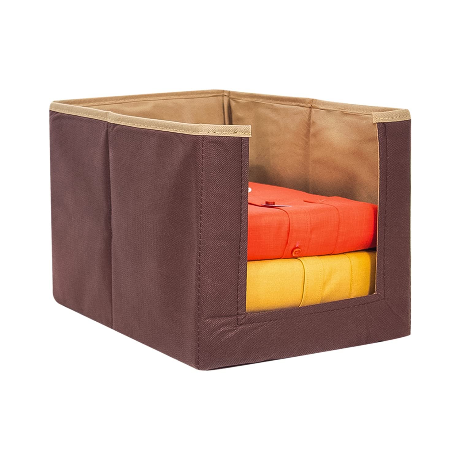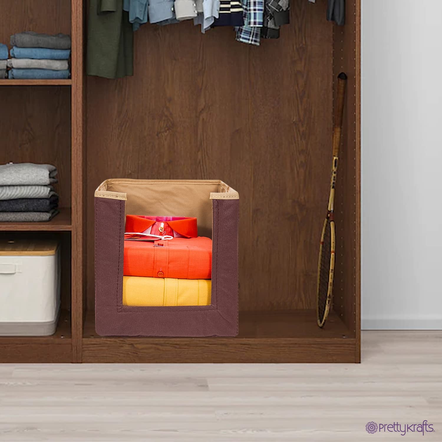 PrettyKrafts 2 Pcs Non Woven Shirt Stacker/Cloth Organizer for Storage/Closet & Wardrobe Organizer for Storage/Foldable Shirt Organizer Cloth Storage Box (Beige & Brown, 26x40x26 cm)