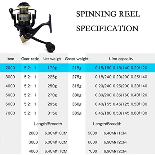 Proberos® Spinning Fishing Reel Heavy Duty Metal Spinning Fishing Reel Smooth 11BB Left/Right Interchangeable Metal Shaft Handle Smooth 11BB 5.2: 1 Gear Ratio