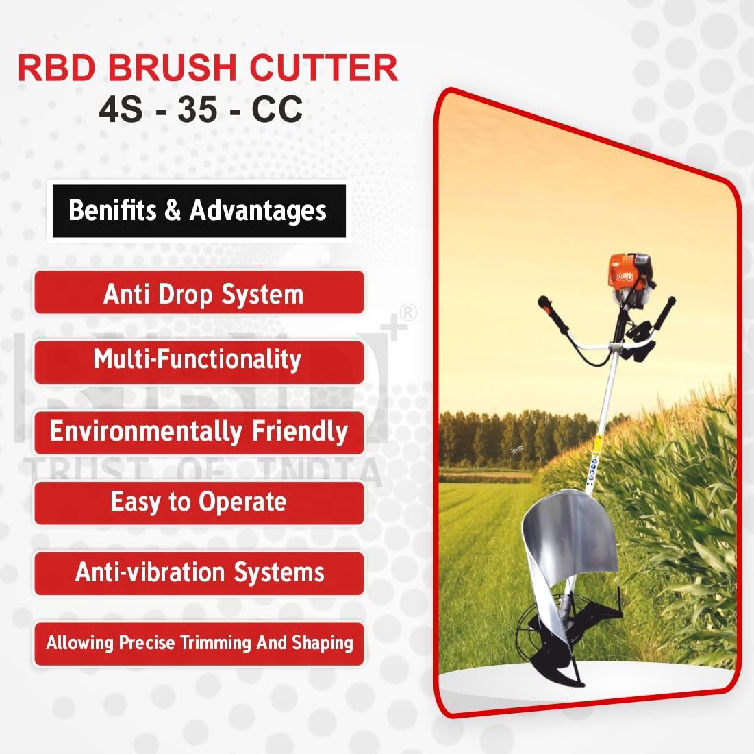 RBD Brush Cutter 4 Stroke Engine Lawn Grass Cutter Machine, 35cc Sidepack Agriculture Machine for Grass Cutting, Weeds, and Small Brush Or Shrubs, Trim Overgrown Grass – Without Tiller