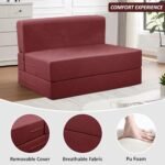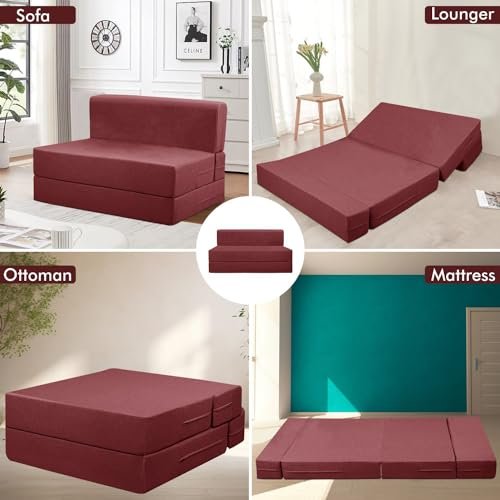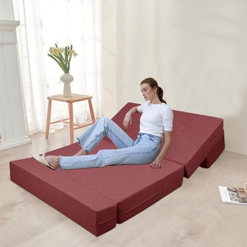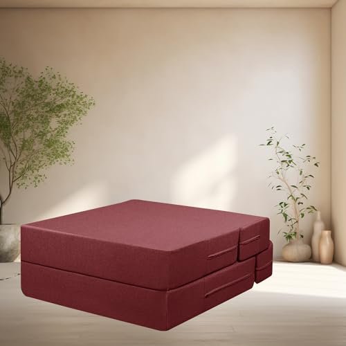 Rosebell Foldable One Seater Sofa Cum Bed, Sofa Bed 3 X 6 Feet, Jute Fabric- Washable Cover- Including 1 Cushion Perfect for Home & Office for Guests(Red Color)