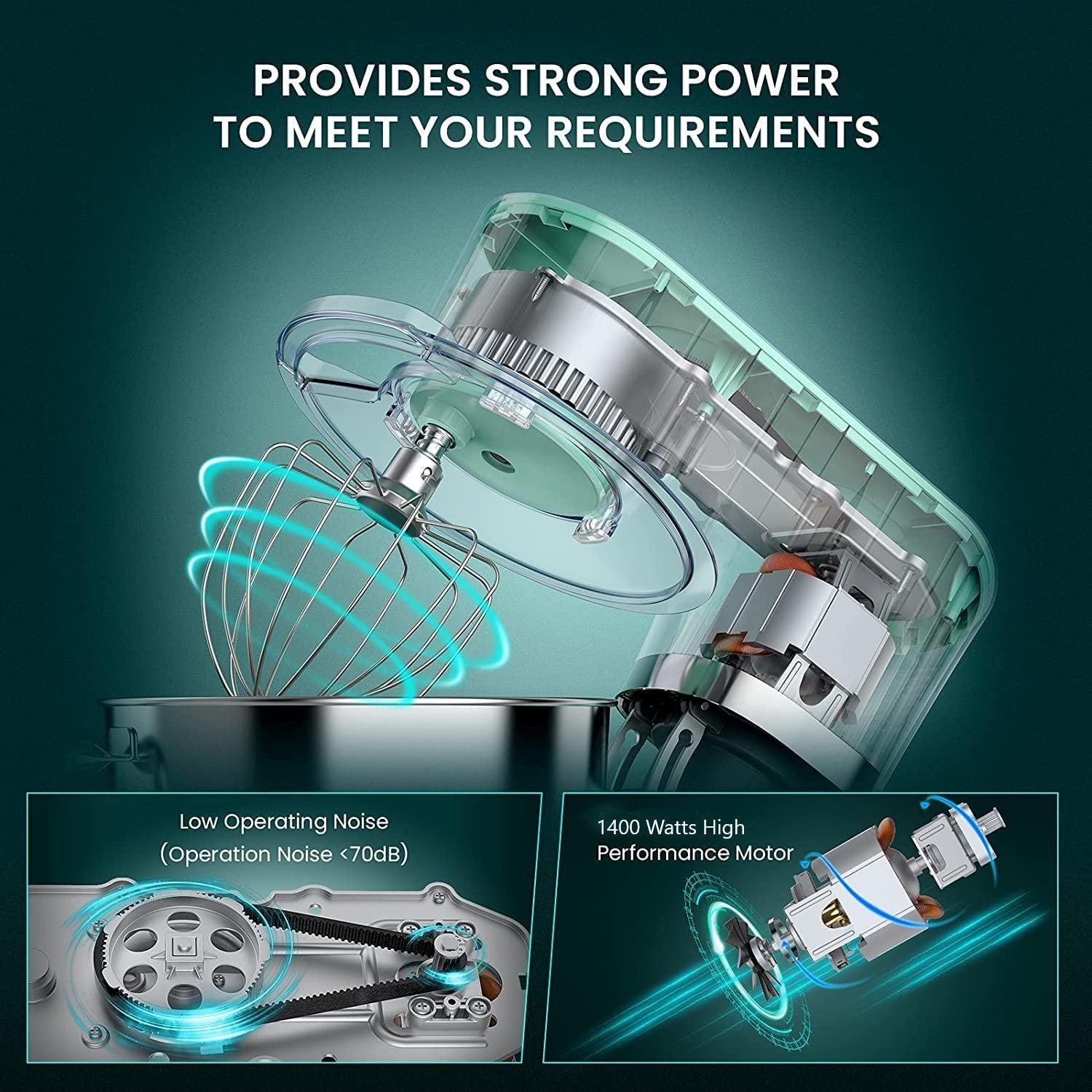 Rossmann Stand Mixer, Professional 2000 Watts 100% Pure Copper Motor, 6 Lit removeable SS Bowl, 4 Safety Features, Metal Gears & Planetary Rotation, Teflon Coated Accessories, Black