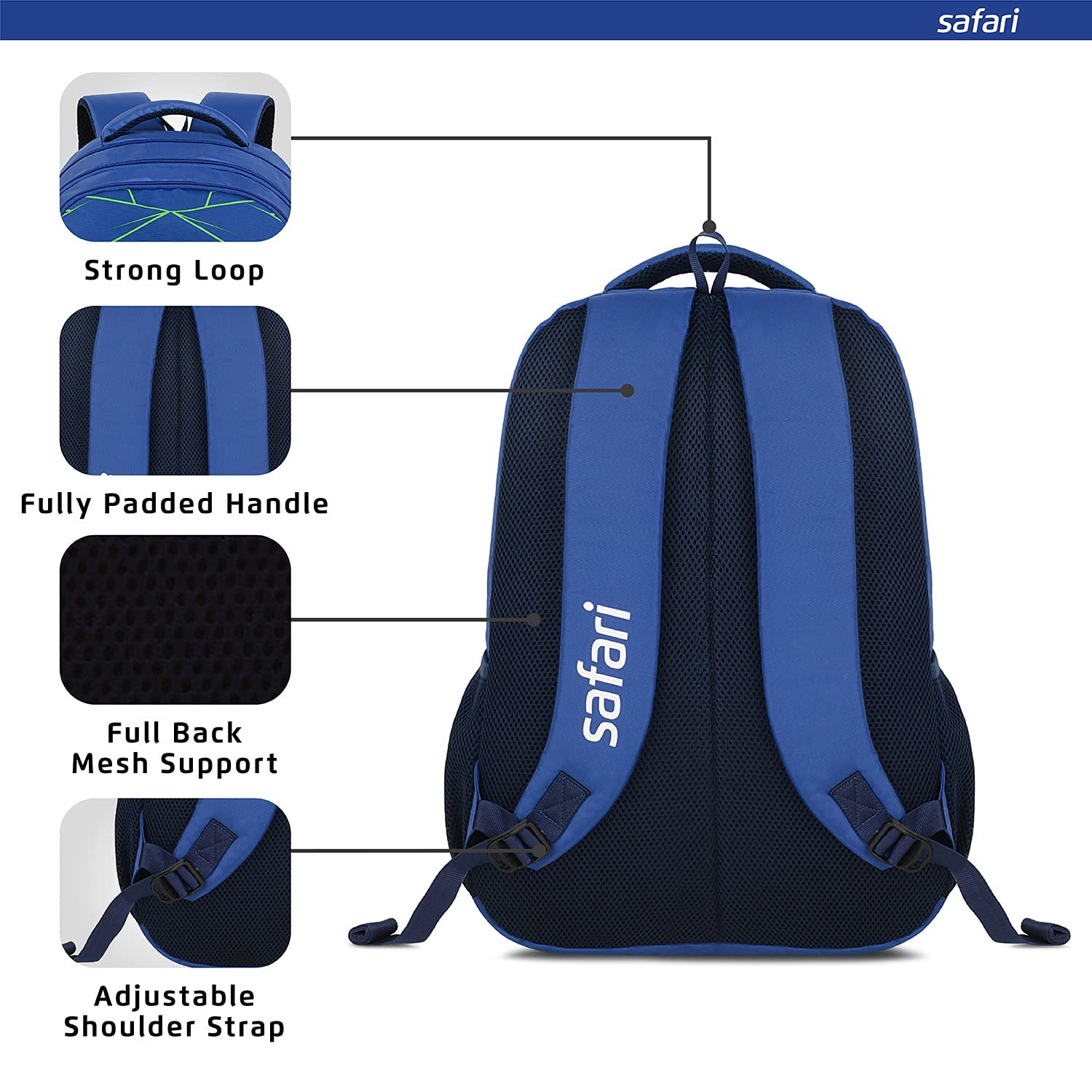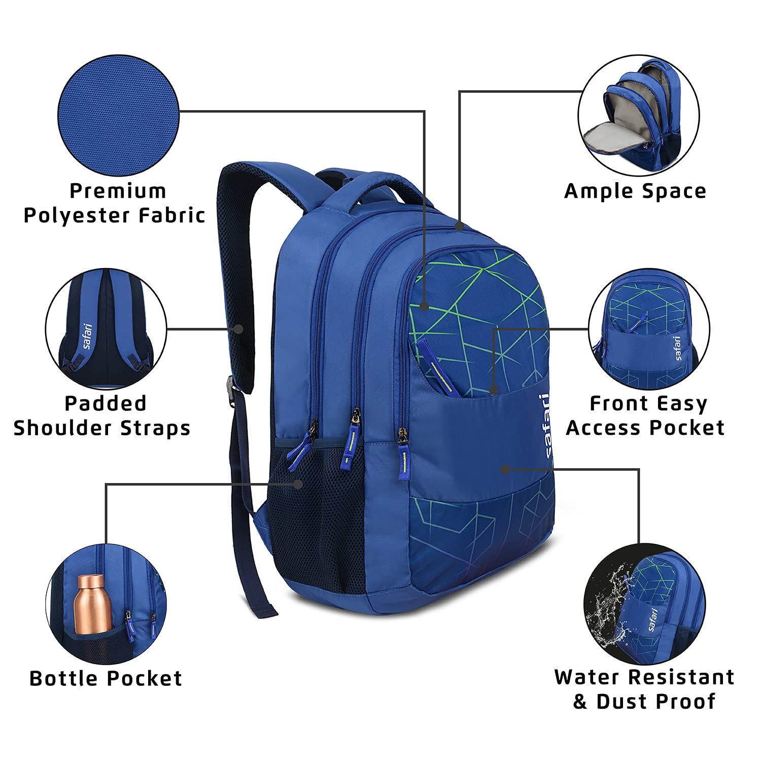 Safari Hitech Large Size 35 Ltrs Water Resistant Standard 4 Compartment Backpack – Blue