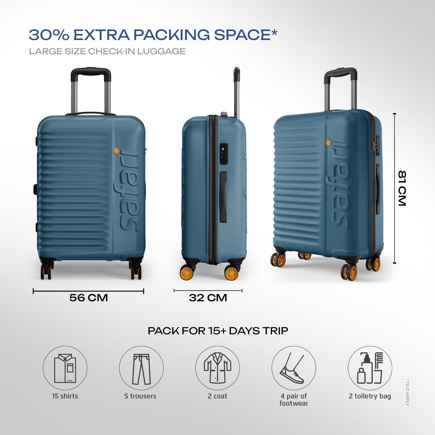 Safari Large Polycarbonate Spinner Wheels Insignia 8 Wheels 81cm Size Check-in Trolley Bag, TSA Lock, Hard Case, XL Size International Travel Luggage, Suitcase for Travel, Ink Blue