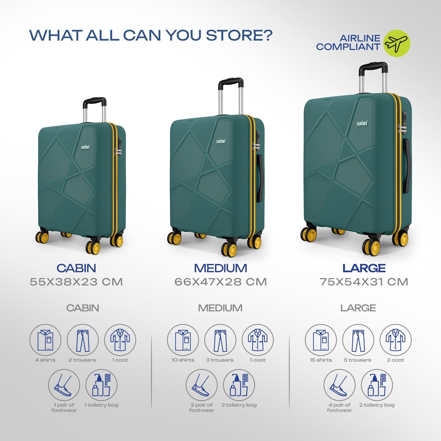 Be the first to review “Safari Pentagon Neo 8 Wheels Set of 3 (Cabin + Medium + Large) Trolley Bags Hard Case Polypropylene, 360 Degree Wheeling Luggage, Travel Bag, Suitcase for Travel, Trolley Bags for Travel, Sage Green”