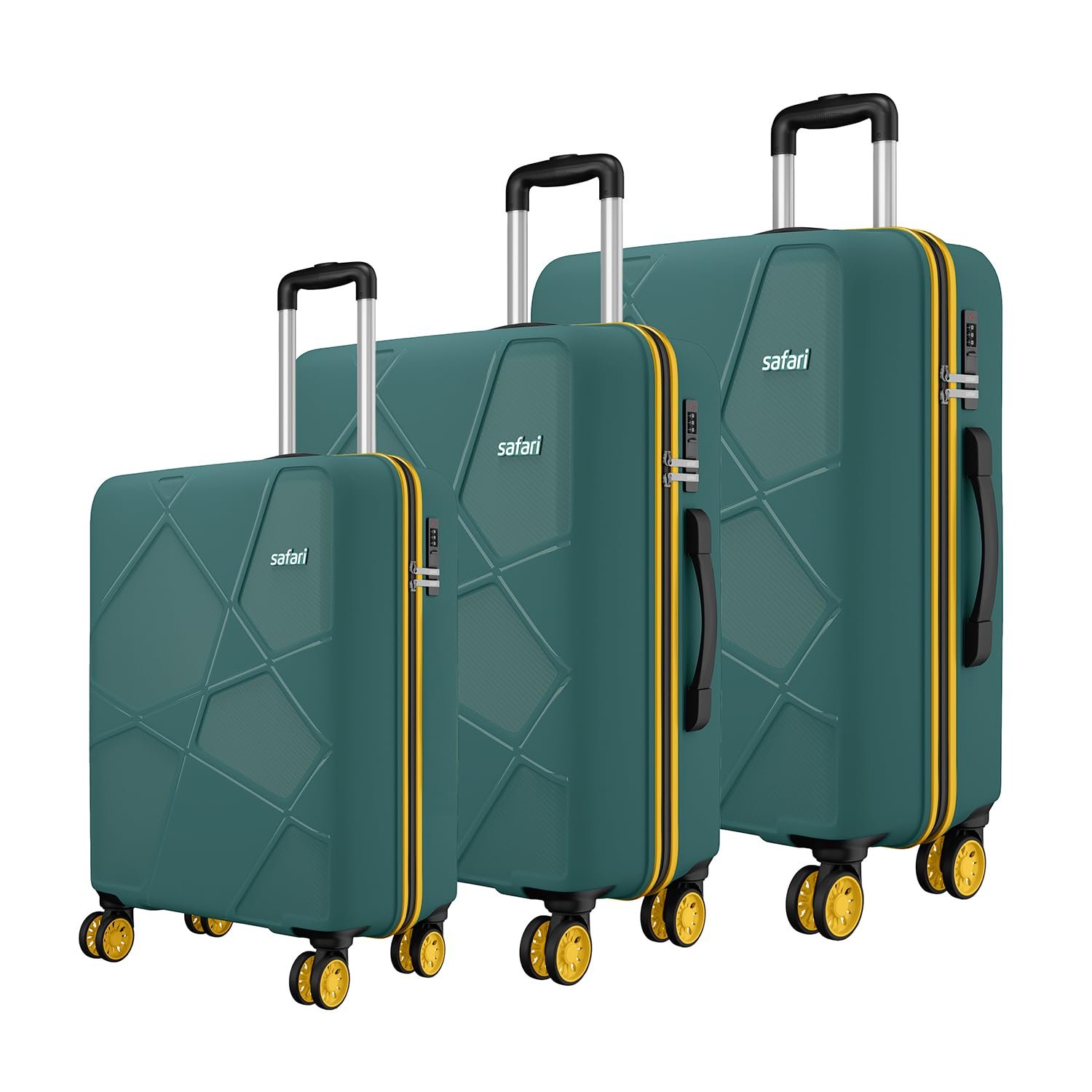 Safari Pentagon Neo 8 Wheels Set of 3 (Cabin + Medium + Large) Trolley Bags Hard Case Polypropylene, 360 Degree Wheeling Luggage, Travel Bag, Suitcase for Travel, Trolley Bags for Travel, Sage Green