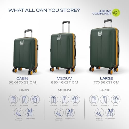 Safari Thorium Neo 8 Wheels Set of 3 Trolley Bags, Hard Case Polycarbonate, 360º Wheeling Carry on & Check-in Luggage for Men & Women, Suitcase for Travel, Trolley Bags for Travel, Dusk Green