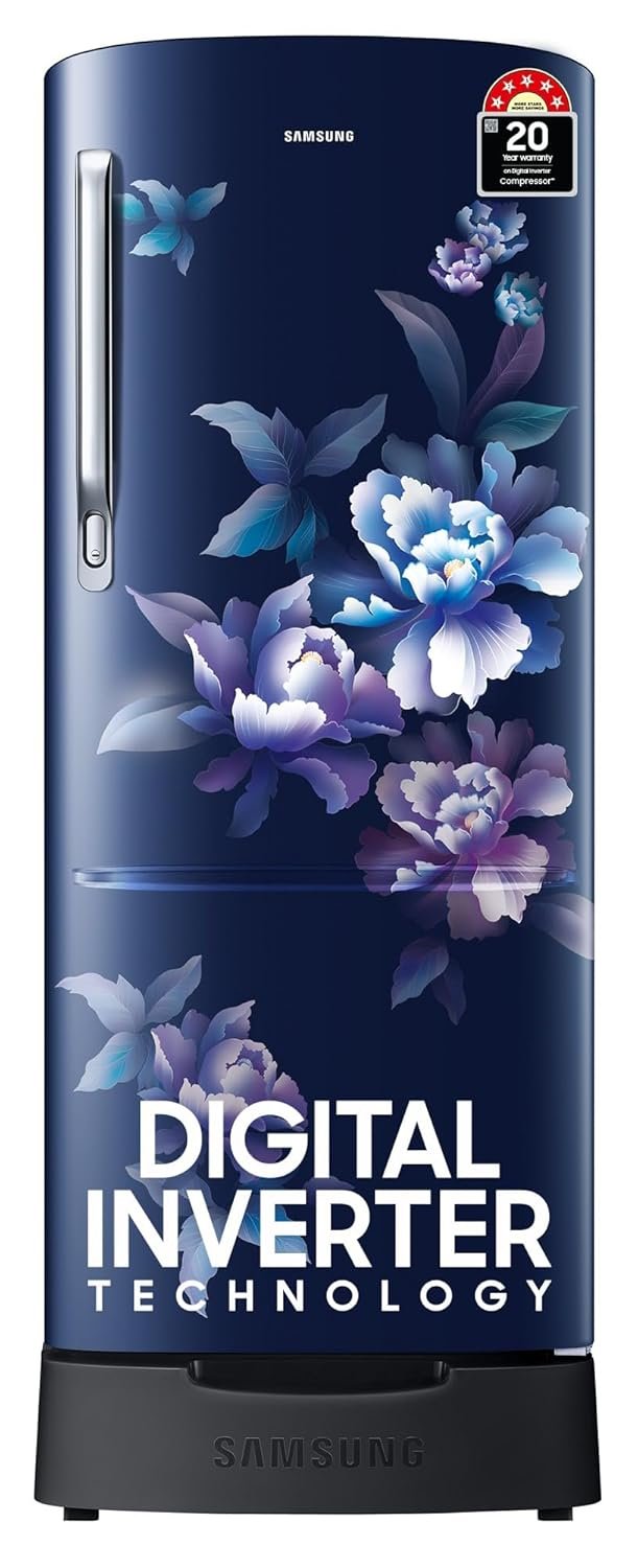 Samsung 183 L, 5 Star, Digital Inverter, Direct-Cool Single Door Refrigerator (RR20D2825HV/NL, Himalaya Poppy Blue, Base Stand Drawer)