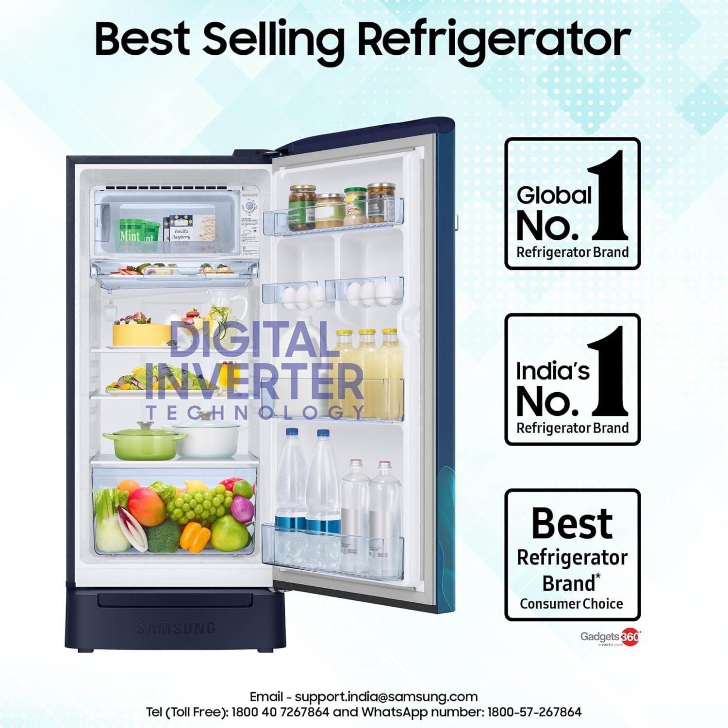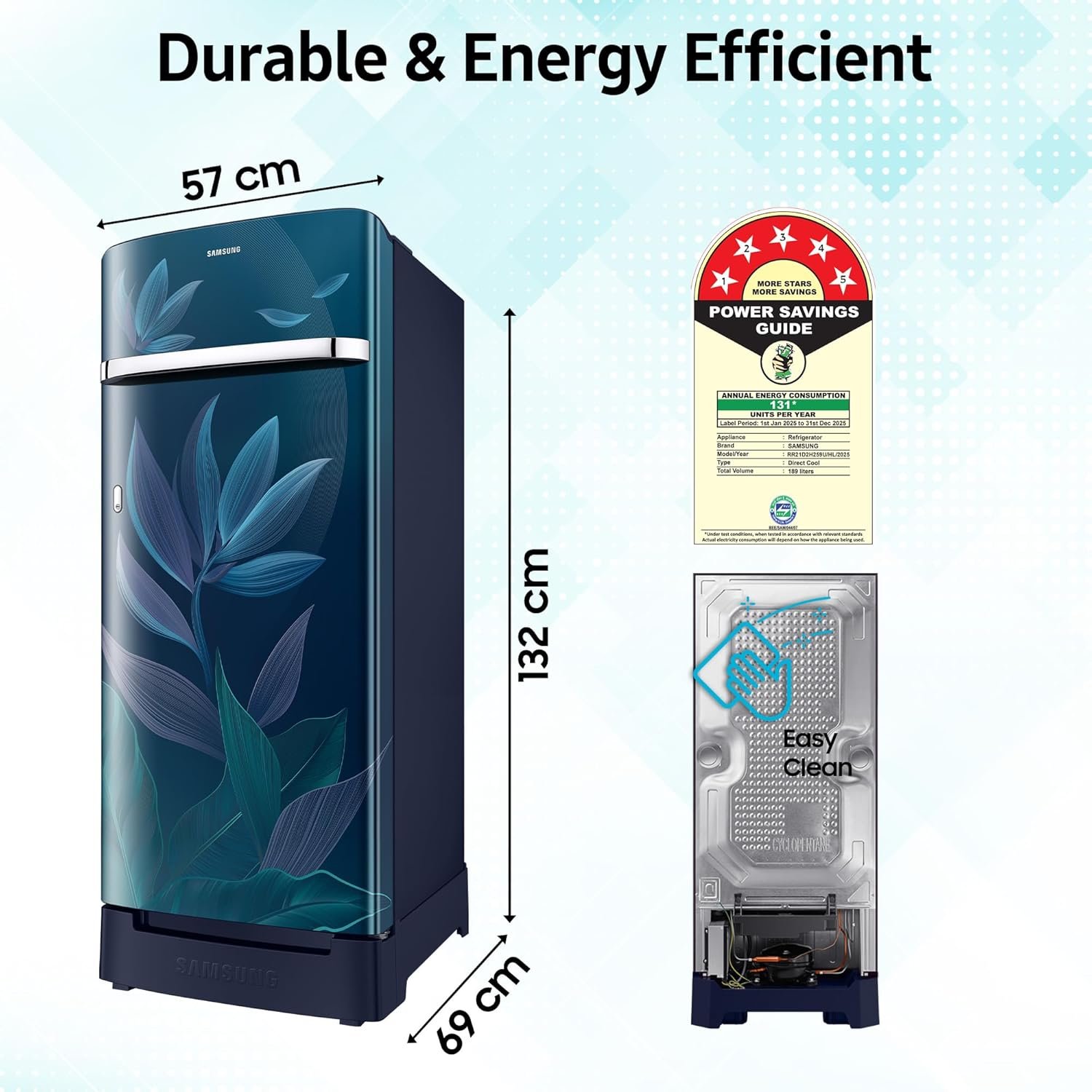 Be the first to review “Samsung 189 L, 5 Star, Digital Inverter, Direct-Cool Single Door Refrigerator (RR21D2H259U/HL, Paradise Bloom Blue, Base Stand Drawer)”