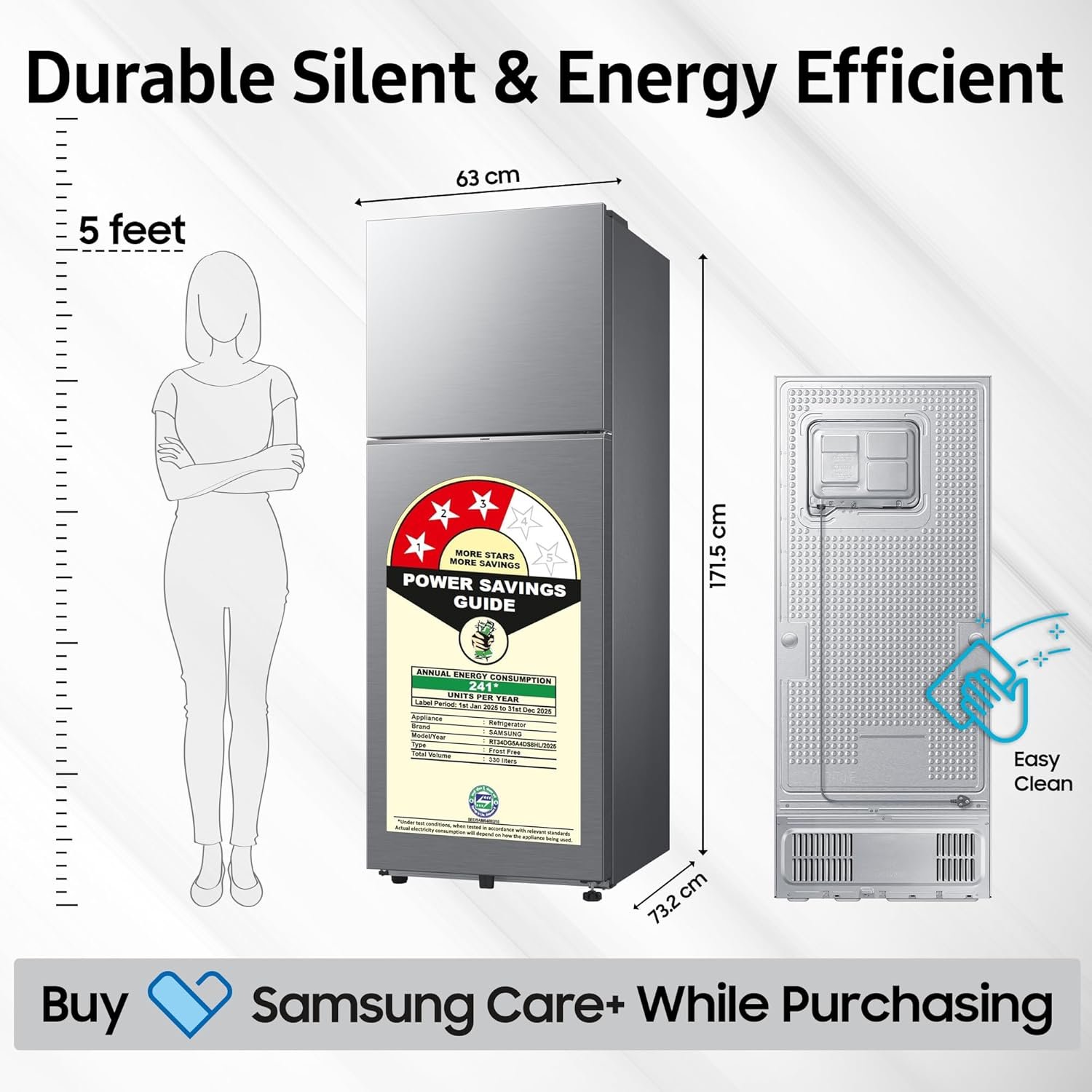 Be the first to review “Samsung 330 L, 3 Star, Convertible 5-in-1, Digital Inverter, Frost Free Double Door, WiFi Enabled Bespoke AI Refrigerator (RT34DG5A4DS8HL, Elegant Inox, Silver)”