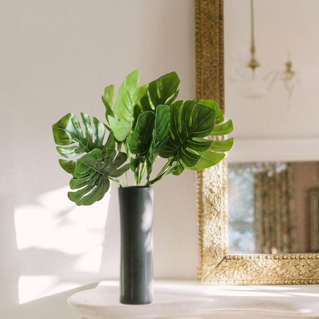 SATYAM KRAFT 6 Pcs Artificial Big Monstera Palm Leaves for Home Decor, Living Room, Office Desk, Garden, Balcony, Bedroom, Table Decoration, Gifting, Wedding (40cm, Green, Fabric, Without Vase)