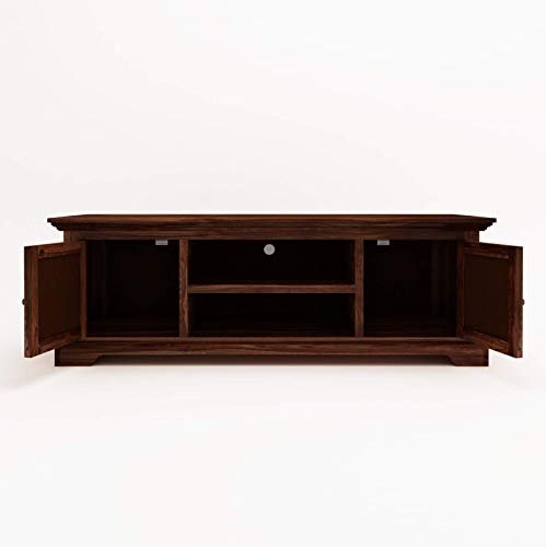 Sheesham Wood TV Stand with 2 Door & Shelf Storage for Living Room Home Entertainment Unit Center Console TV Table Wooden Tv Cabinet (Natural Brown Finish)