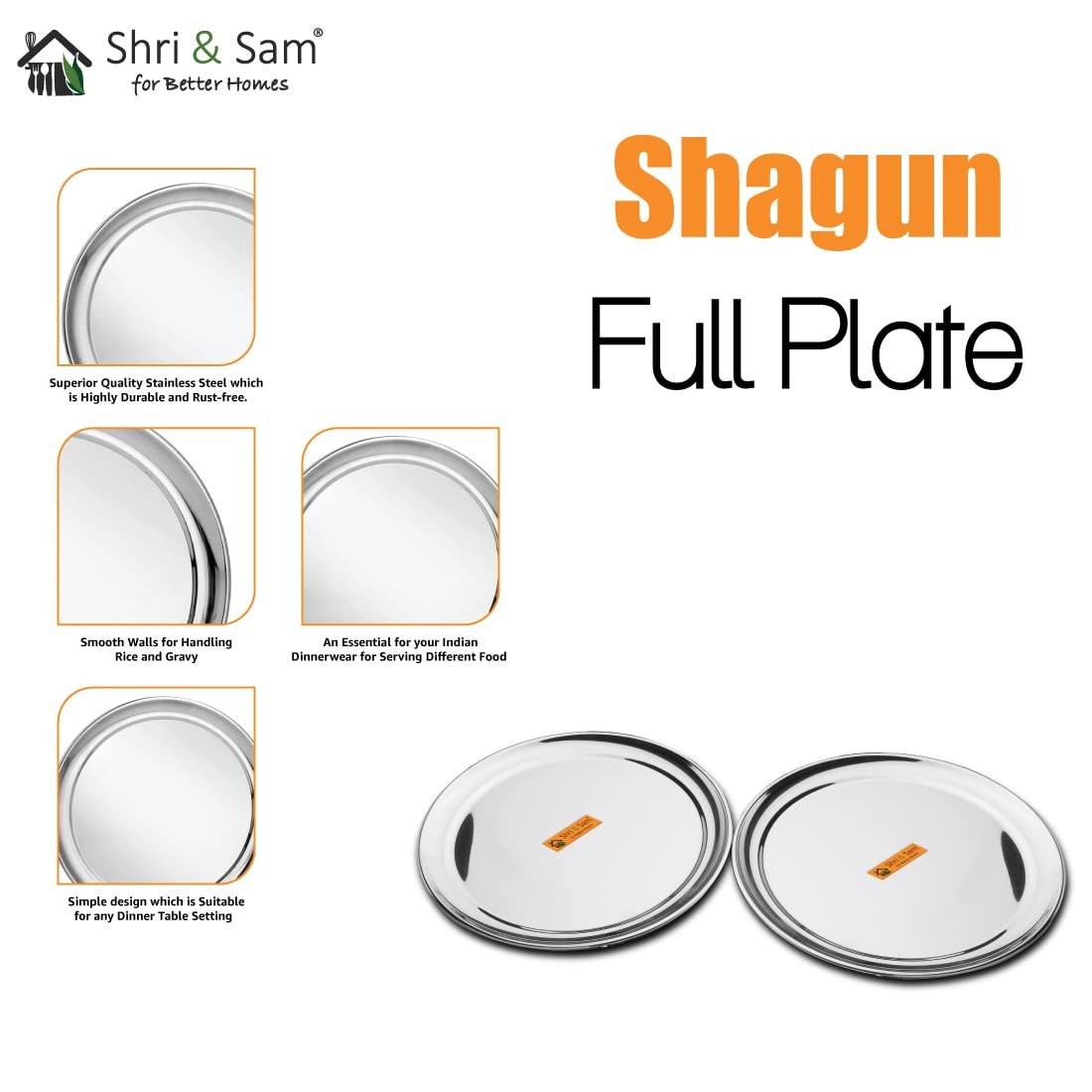Shri & Sam Stainless Steel High Grade Shagun Dinner Plates (2 Pcs)