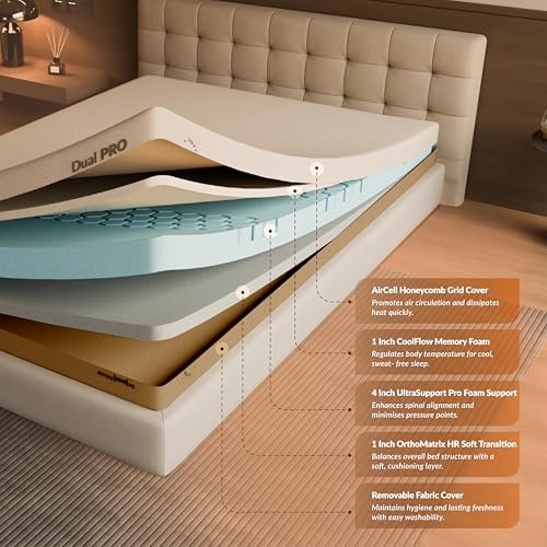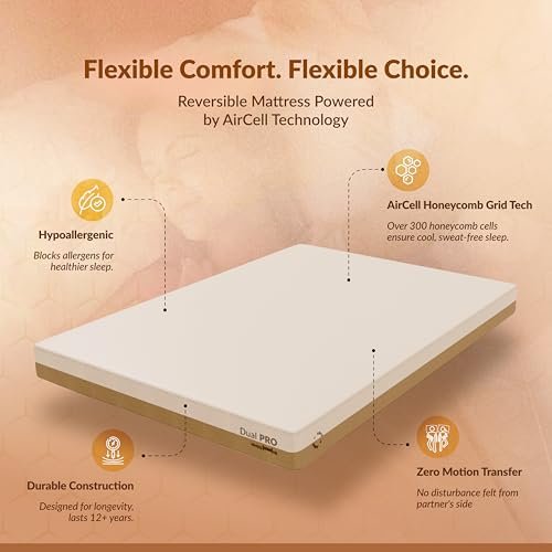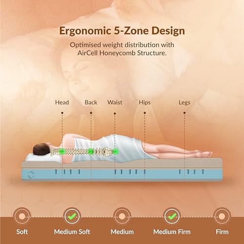 SleepyHug AirCell Dual Ortho PRO 6 Inch Memory Mattress | Reversible Firm & Soft Sides| 12-Year Warranty |Advanced 5-Zone Pressure Relief | 3-Layer| Queen Bed Size (LxWxH -78x60x6 Inch)