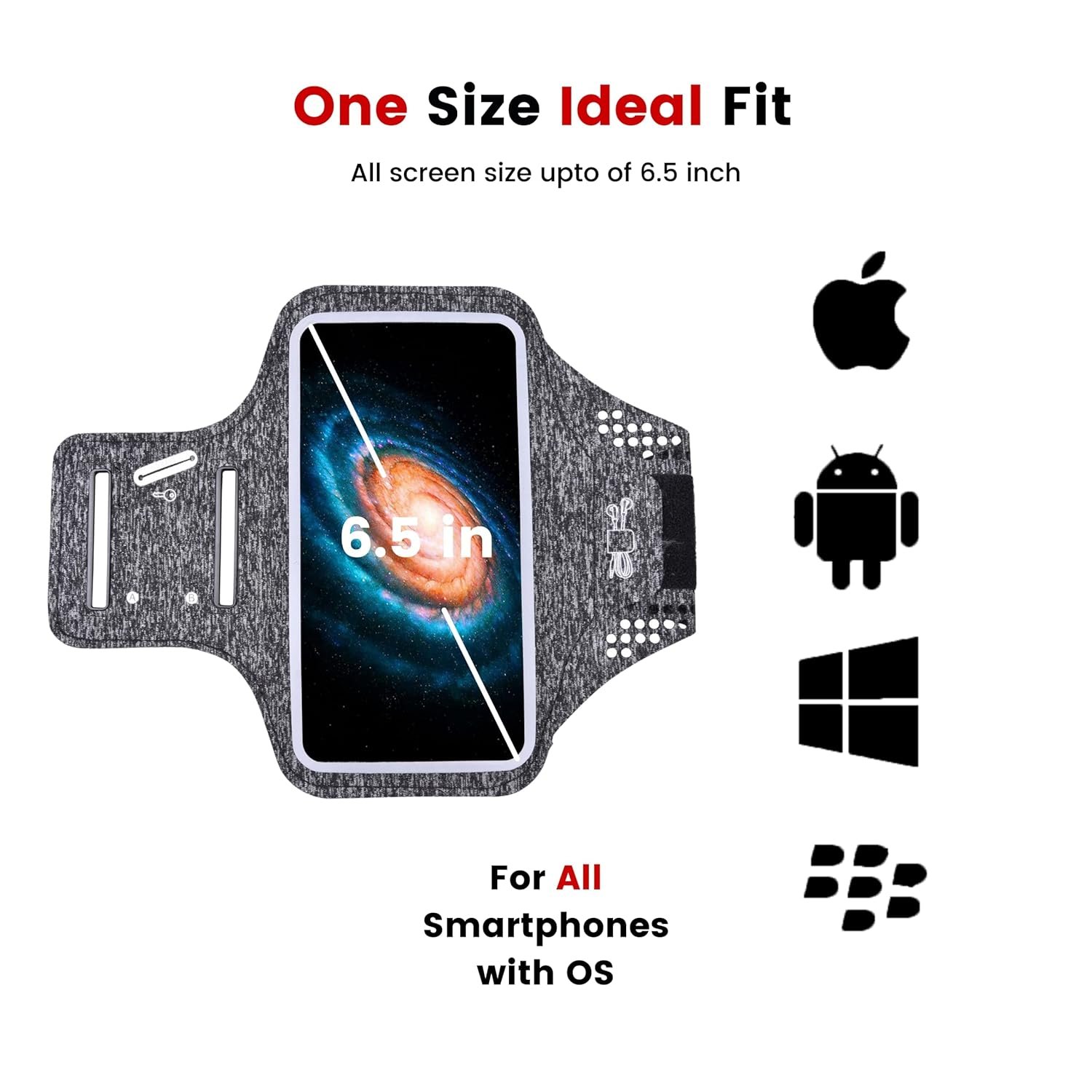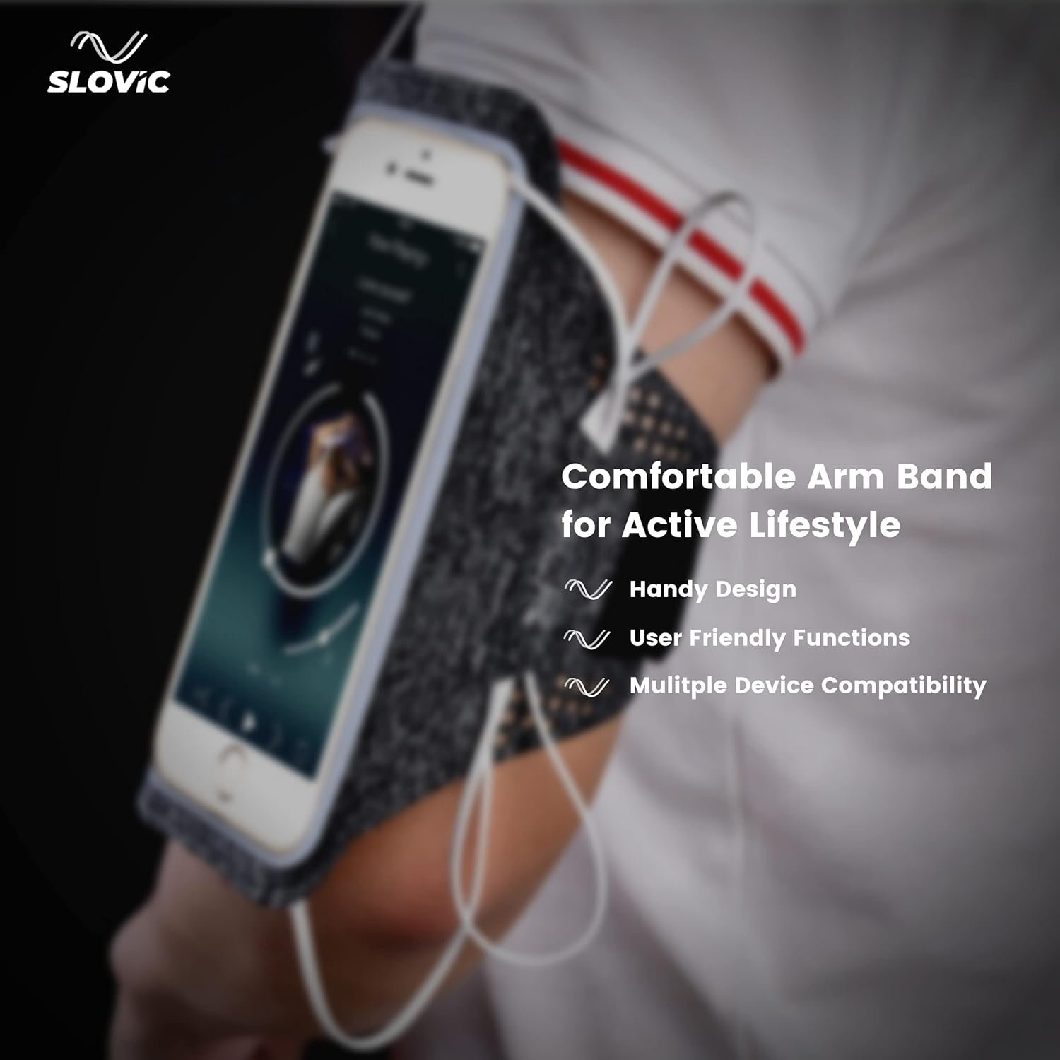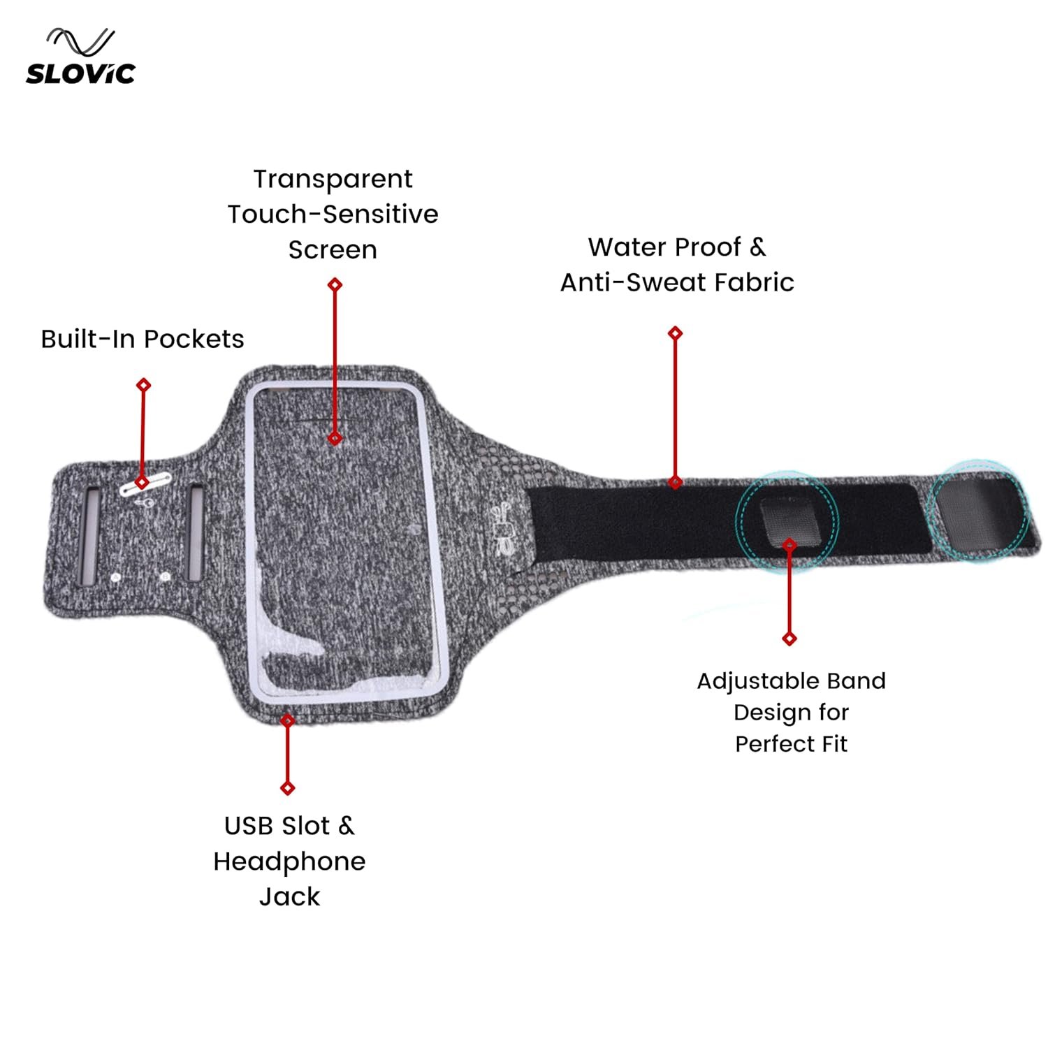Slovic Cell Phone Armband | Adjustable Band fits All iPhone and Android Smartphones | Waterproof & Anti-Sweat Fabric | Charging Port & Headphone Jack | Built-in Rear Pocket for Storage